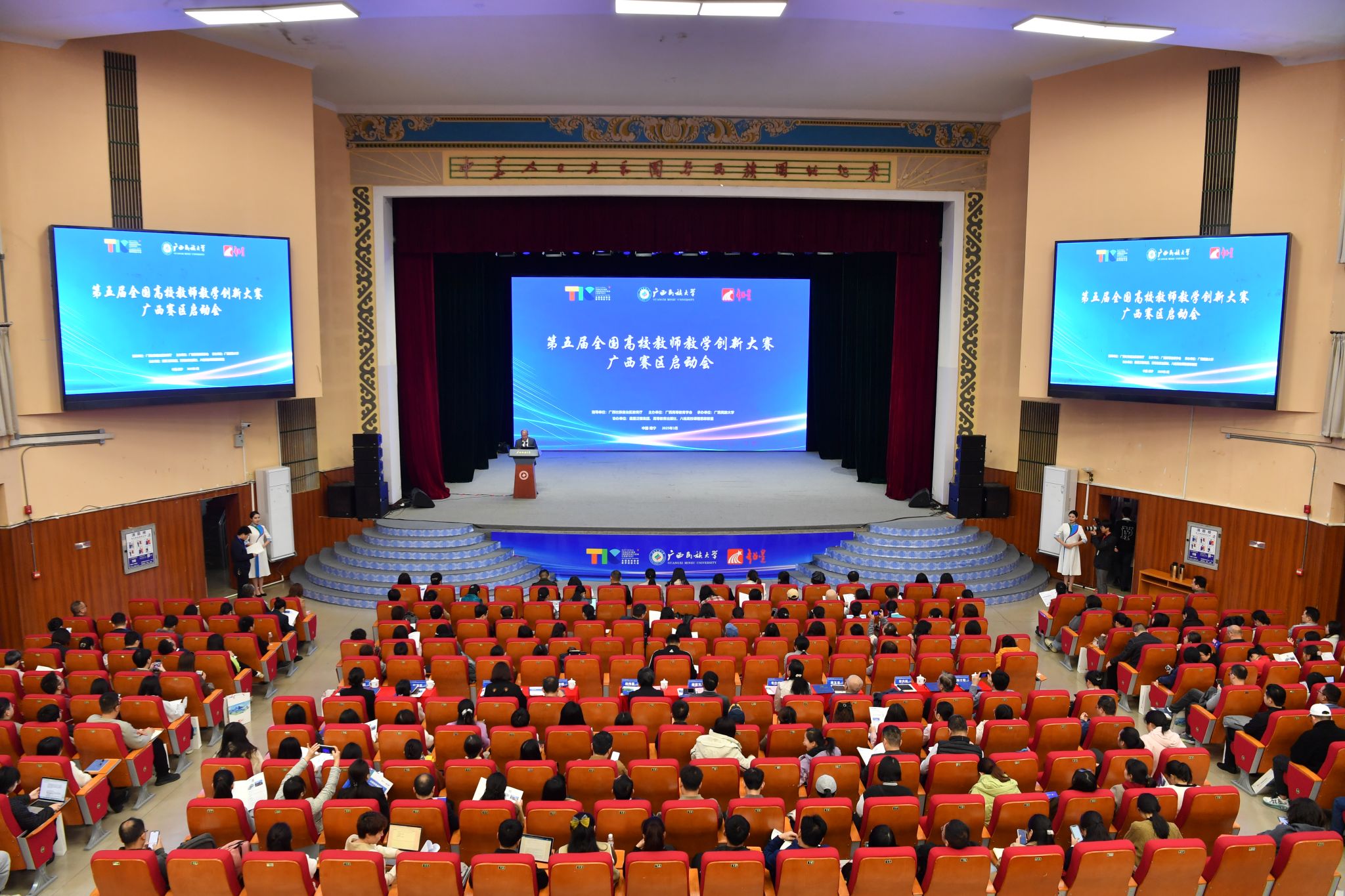 【大学生通讯社报道】3月16日,由自治区教育厅指导、广西高等教育学会主办、广西民族大学承办的第五届全国高校教师教学创新大赛广西赛区启动会暨备赛培训在广西民族大学举行。广西民族大学校长韦仕珍、广西高等教育学会会长杨伟嘉出席会议并致辞。广西民族大学副校长姜明国主持会议。自治区教育厅有关处室负责同志,全区39所高校分管教学副校长、教务处和教师教学发展中心负责人、参赛选手及教师代表等共700余人参加启动会。