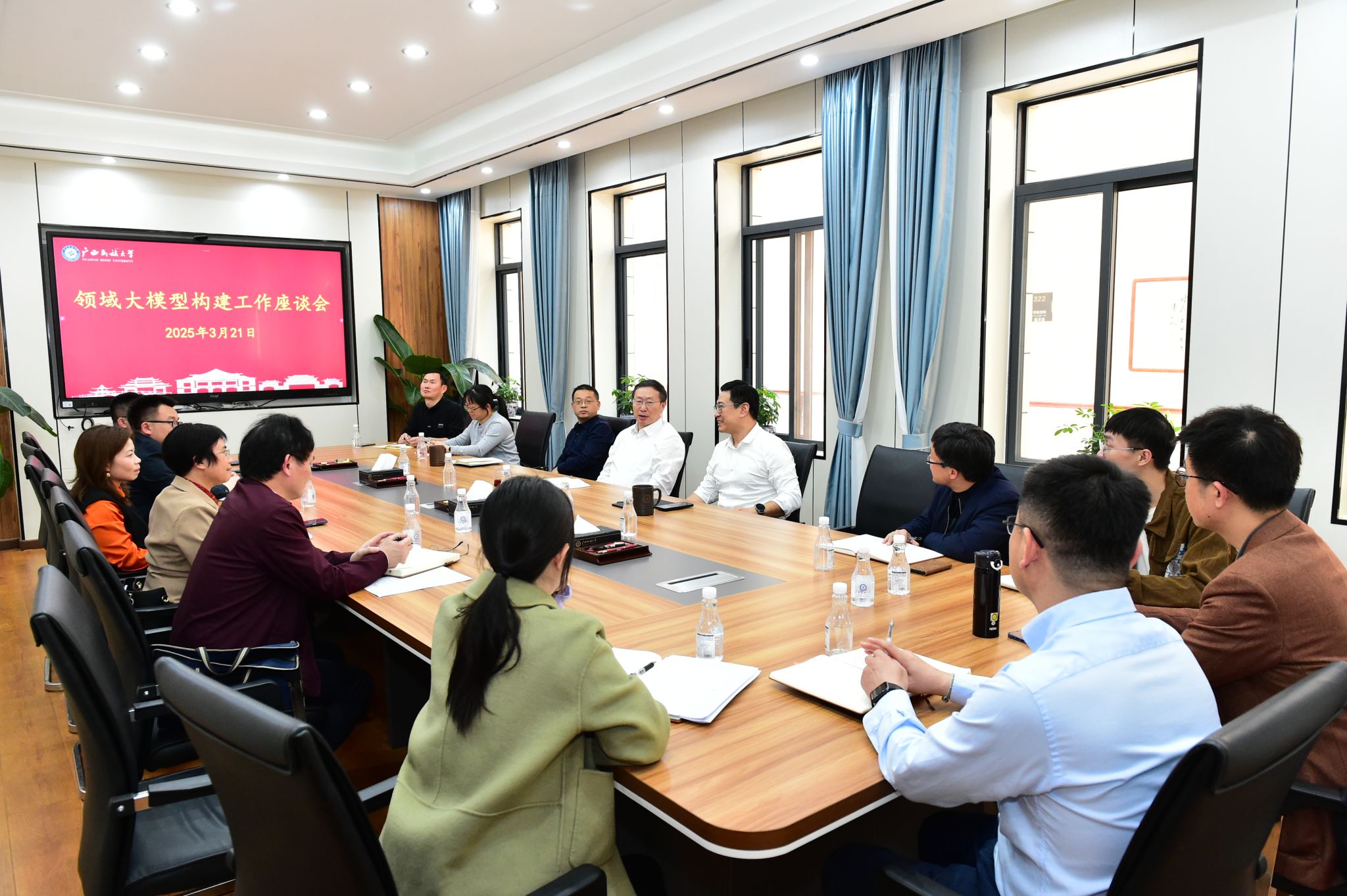 3月21日下午,广西民族大学在办公楼302会议室召开领域大模型构建工作座谈会,校党委书记卞成林主持会议并讲话,副校长高兴宇及有关职能部门、学院负责人参加会议。