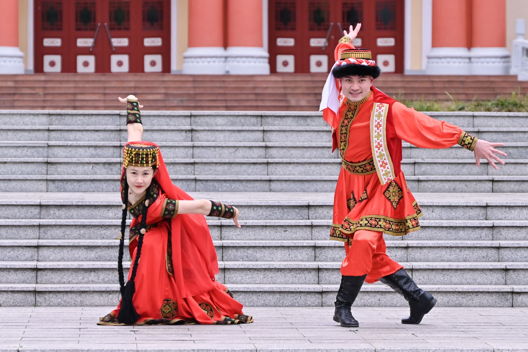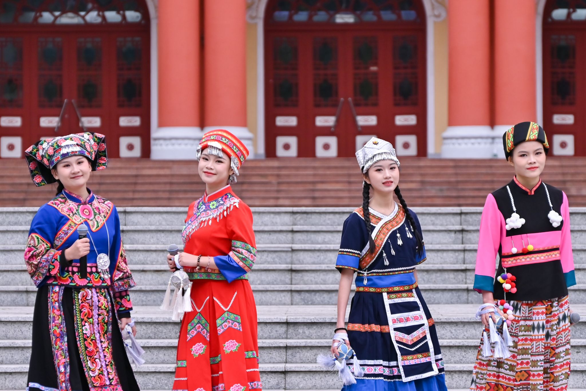 伴随着铿锵有力的鼓声,活动正式拉开帷幕。由广西民族大学具身智能研究中心签约单位润建股份有限公司带来的机器狗醒狮表演用现代科技演绎传统民俗,机器狗身披舞狮服,动作整齐划一,时而腾空跃起,时而俯首摆头,姿态灵动轻盈,栩栩如生,为活动注入新潮活力;鼓声震天,舞步飞扬,广西民族大学艺术团的舞者们手持铜鼓,用扎实稳健的舞步诠释着《壮鼓玄音》中的浓浓韵味;一曲《三月三》,歌声悠扬婉转、高亢亮丽,仿佛让人置身于绿意盎然的广西山水中;新疆财经大学师生带来《疆桂融情·佳节同庆》新疆乐曲串烧,用传统民族乐器火不思和冬不拉演奏出文化传承的魅力,用热情似火的舞步架起文化交融的彩桥,将现场氛围推向高潮;广西民族大学合唱团表演的毛南族民歌《欢歌飞过环江河》,唱响民族团结与乡村振兴的崭新篇章;源自八桂大地的茶山舞《捻青踏歌》描绘春光明媚茶山景,舞出诗情画意新茶农……