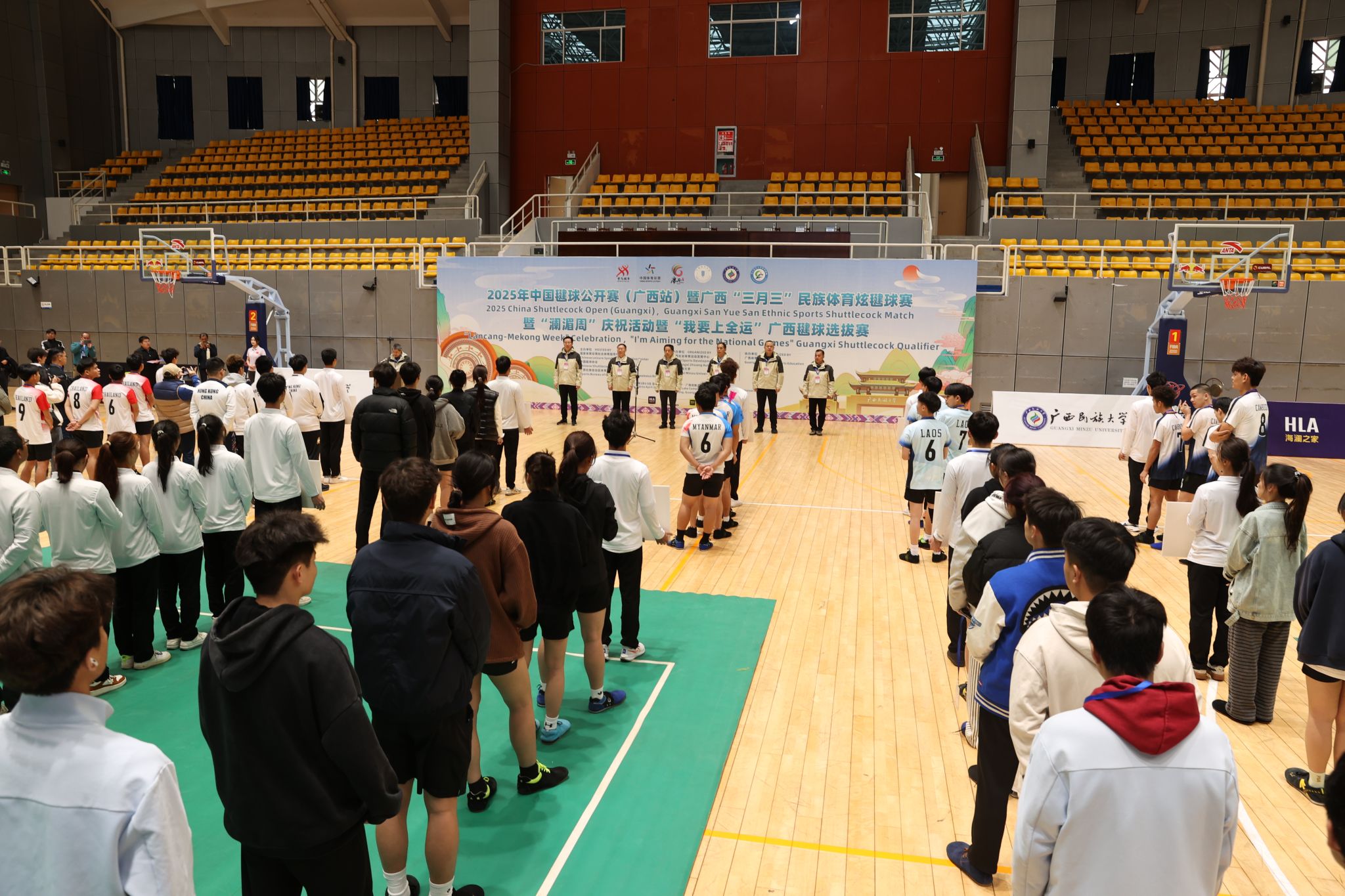 【大学生通讯社报道】3月31日,2025年中国毽球公开赛(广西站)、广西“三月三”民族体育炫毽球赛、“澜湄周”庆祝活动暨“我要上全运”广西毽球选拔赛开幕式在广西民族大学思源湖校区体育馆举行。国家体育总局社会体育指导中心副主任黄强宣布本次毽球选拔赛开幕,广西民族大学党委书记卞成林致开幕词,自治区体育局二级巡视员张国贤、国家体育总局社会体育指导中心备战及反兴奋剂工作部主任、中国毽球协会秘书长周卫中,广西社会体育运动发展中心主任文春晖、广西体育高等专科学校体育竞训中心主任张忠出席开幕式,有关区市、高校有关部门领导、业务科室负责人、澜湄各国体育界同仁、教练员、裁判员、运动员到场参加。副校长吕俊彪主持开幕式。