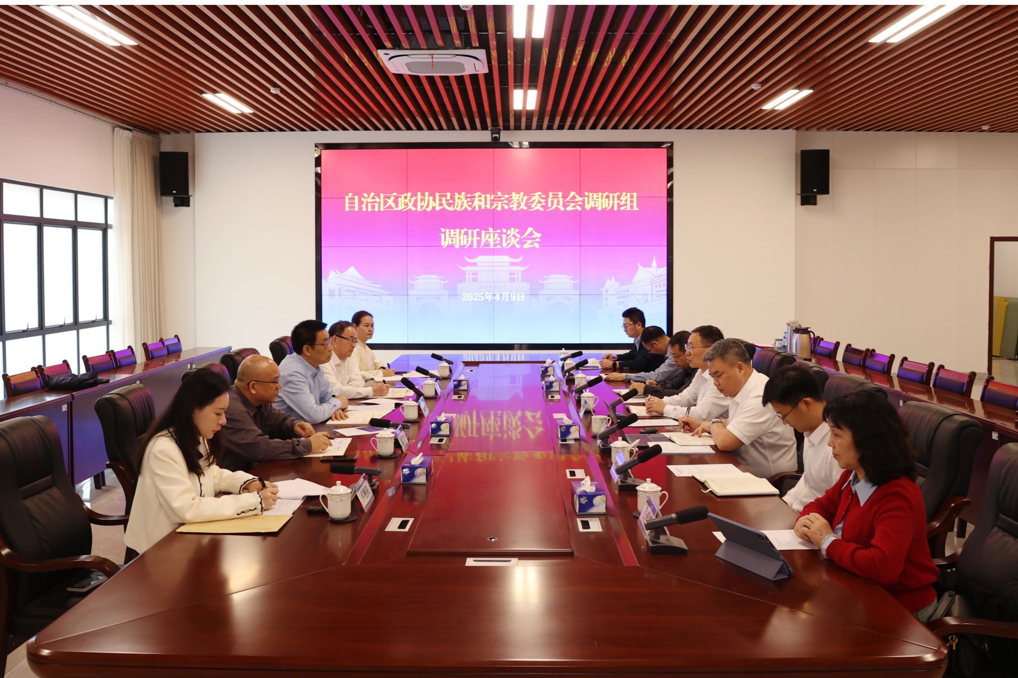 【大学生通讯社报道】4月9日上午,自治区政协民族和宗教委员会主任班忠柏率调研组到广西民族大学广西中华民族共同体意识研究院调研交流,广西民族大学党委书记卞成林,党委副书记陈铭彬出席座谈会。