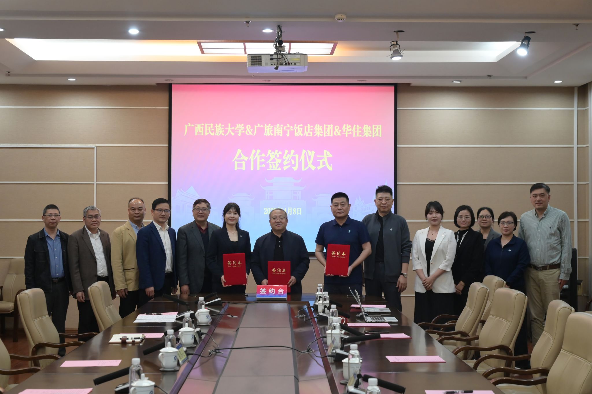 4月8日,校党委常委、副校长姜明国在广西民族大学与广旅南宁饭店集团、华住集团合作签约仪式上表示,希望三方能围绕框架协议开展合作事项,大力推进本科教育与产业协同发展,共建人才培养体系,深化、定制化培养模式,强化商业协同创新,促进校企资源共享。(初审/刘建民 复审/潘之铭 终审/孙寿媚)