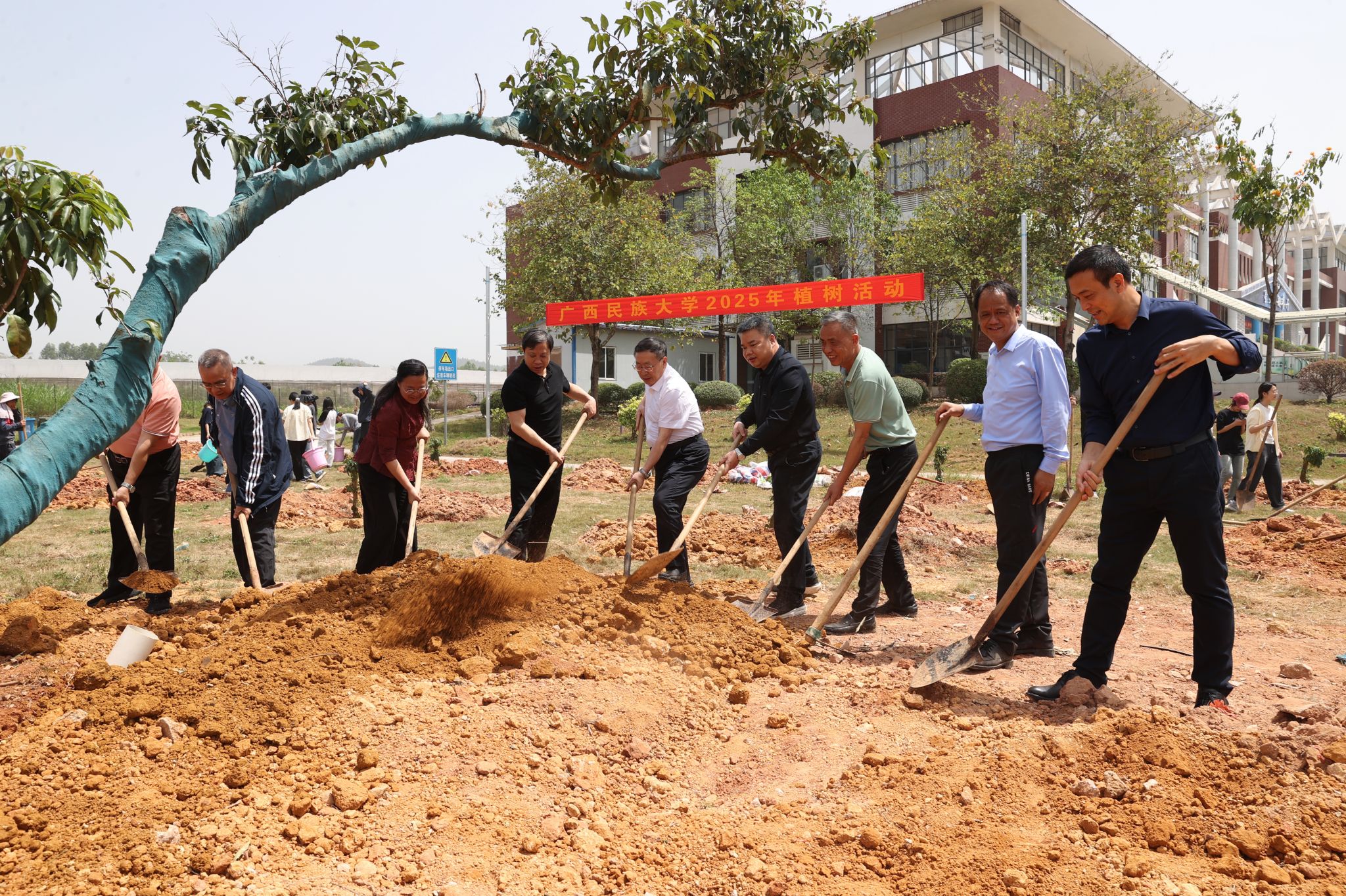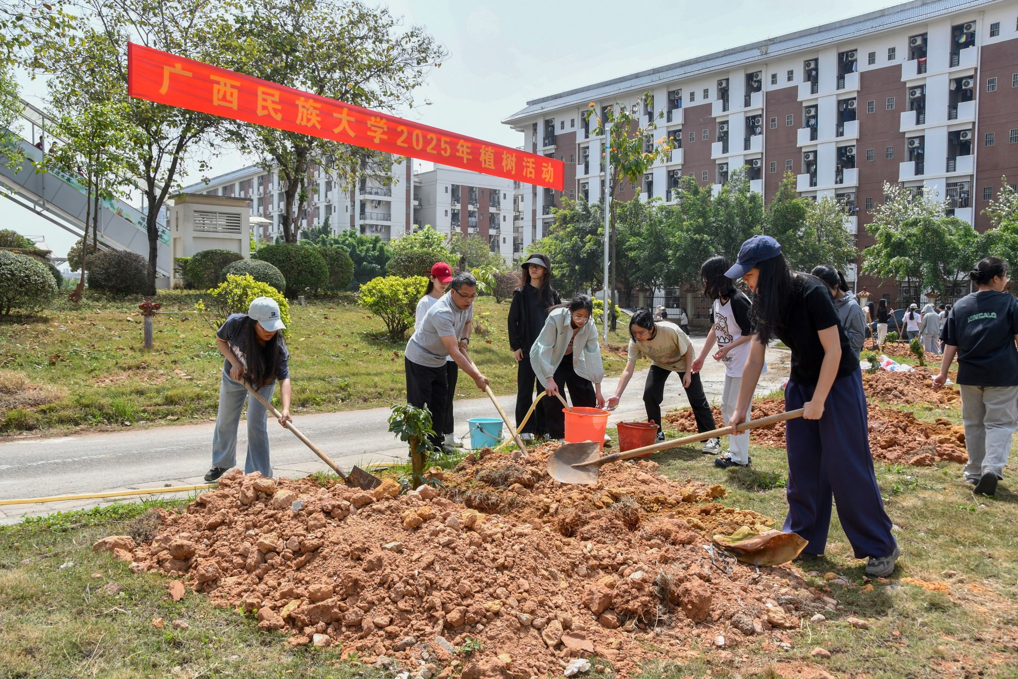 【大学生通讯社报道】4月14日上午,广西民族大学在思源湖校区开展2025年植树活动。学校党委书记卞成林,校长韦仕珍,党委副书记陈铭彬,副校长蔡高根及师生、校友代表等参加活动。