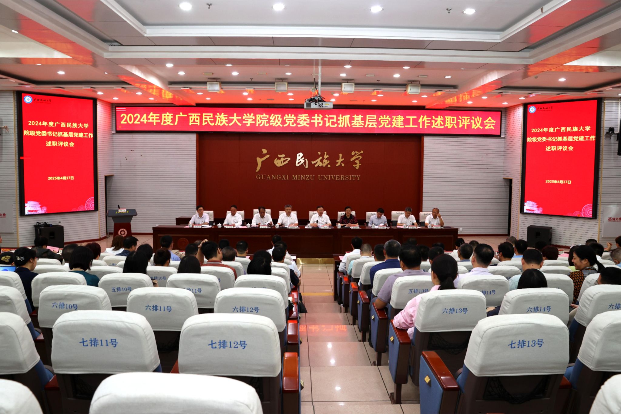 【大学生通讯社报道】4月17日上午,广西民族大学2024年度院级党委书记抓基层党建工作述职评议会在科技楼报告厅召开。校党委书记卞成林主持会议,党委副书记、校长韦仕珍,校领导陈铭彬、邓国彬、蔡高根、吕俊彪、何立荣、姜明国、高兴宇出席会议,学校有关职能部门负责人,各院级党委书记、院长、副书记与会。