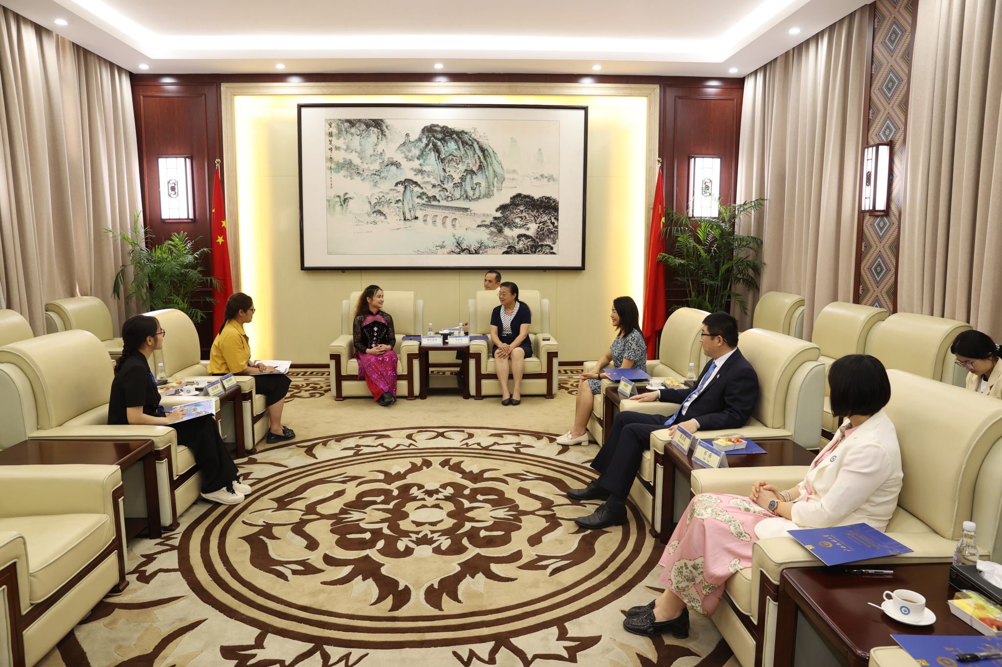 【大学生通讯社报道】4月25日下午,广西民族大学校长韦仕珍会见到访的越南成都大学副校长陶氏爱诗一行。