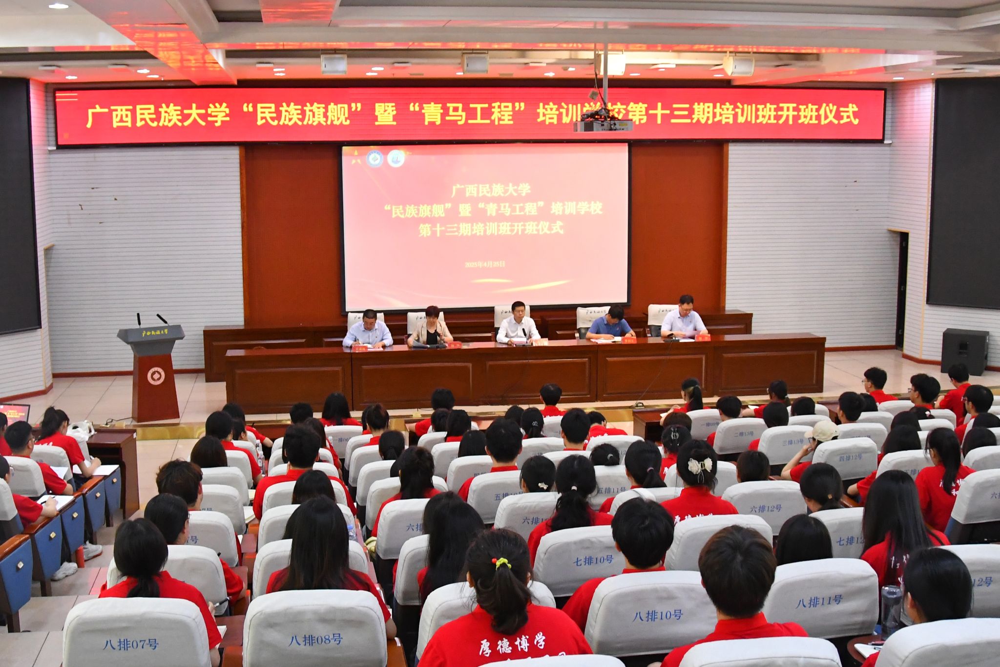 4月25日,校党委副书记邓国彬在“民族旗舰”暨“青马工程”学生骨干培训学校第十三期培训班开班仪式上强调,学员们要深耕理论学习,躬身实践,涵养自身品德,积极担当作为,做民族团结进步的擎旗手,成为理想信念坚定、人品服众的青年骨干,为强国建设、民族复兴贡献青春力量。(初审/钟华 复审/荣子卿 终审/孙寿媚)