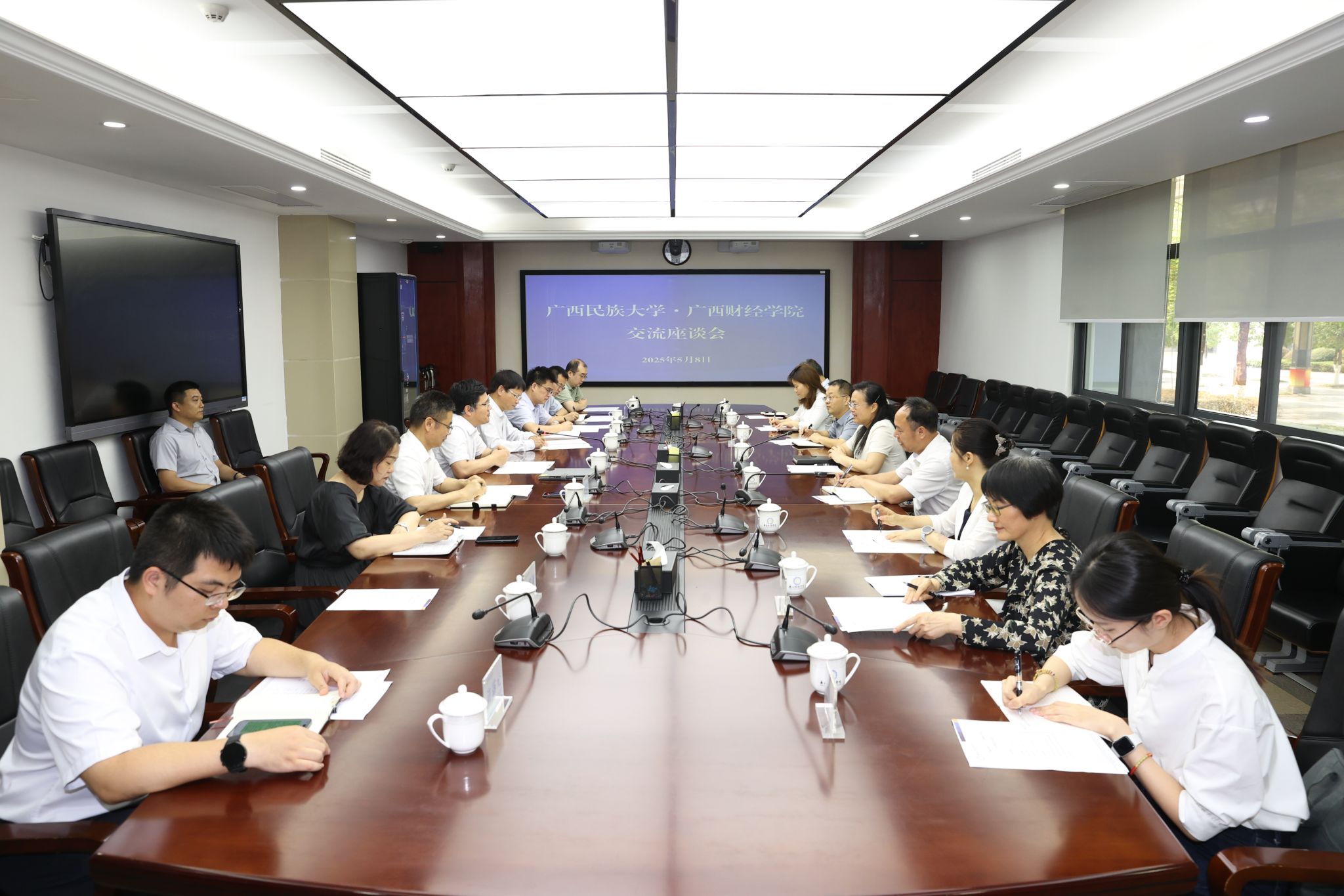 5月8日上午,校长韦仕珍带队到广西财经学院调研交流。会前,广西财经学院党委书记欧阳进会见韦仕珍一行,广西财经学院校长范祚军,副校长陆善勇、唐红祥,广西民族大学副校长何立荣等参加座谈会。