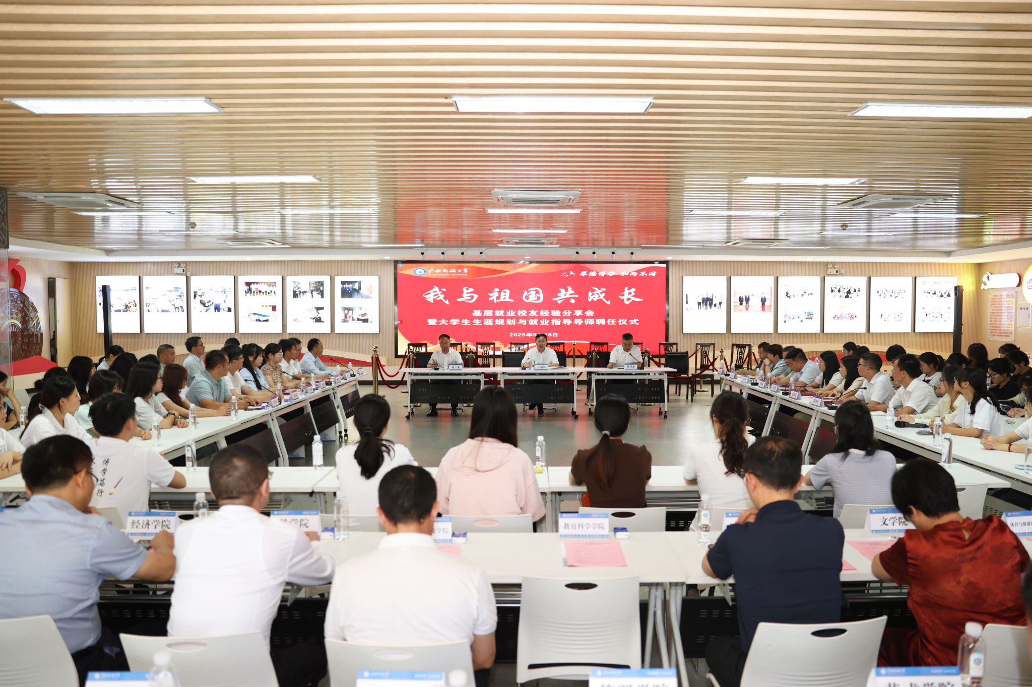 【大学生通讯社报道】5月18日是广西民族大学喜迎建校73周年的日子,当天上午,学校举行“我与祖国共成长”基层就业校友经验分享会。校党委书记卞成林出席活动并为10位校友颁发“大学生生涯规划与就业导师”聘书。校党委副书记陈铭彬主持活动,副校长何立荣及有关部门、学院负责人,校友代表、师生代表参加分享会。