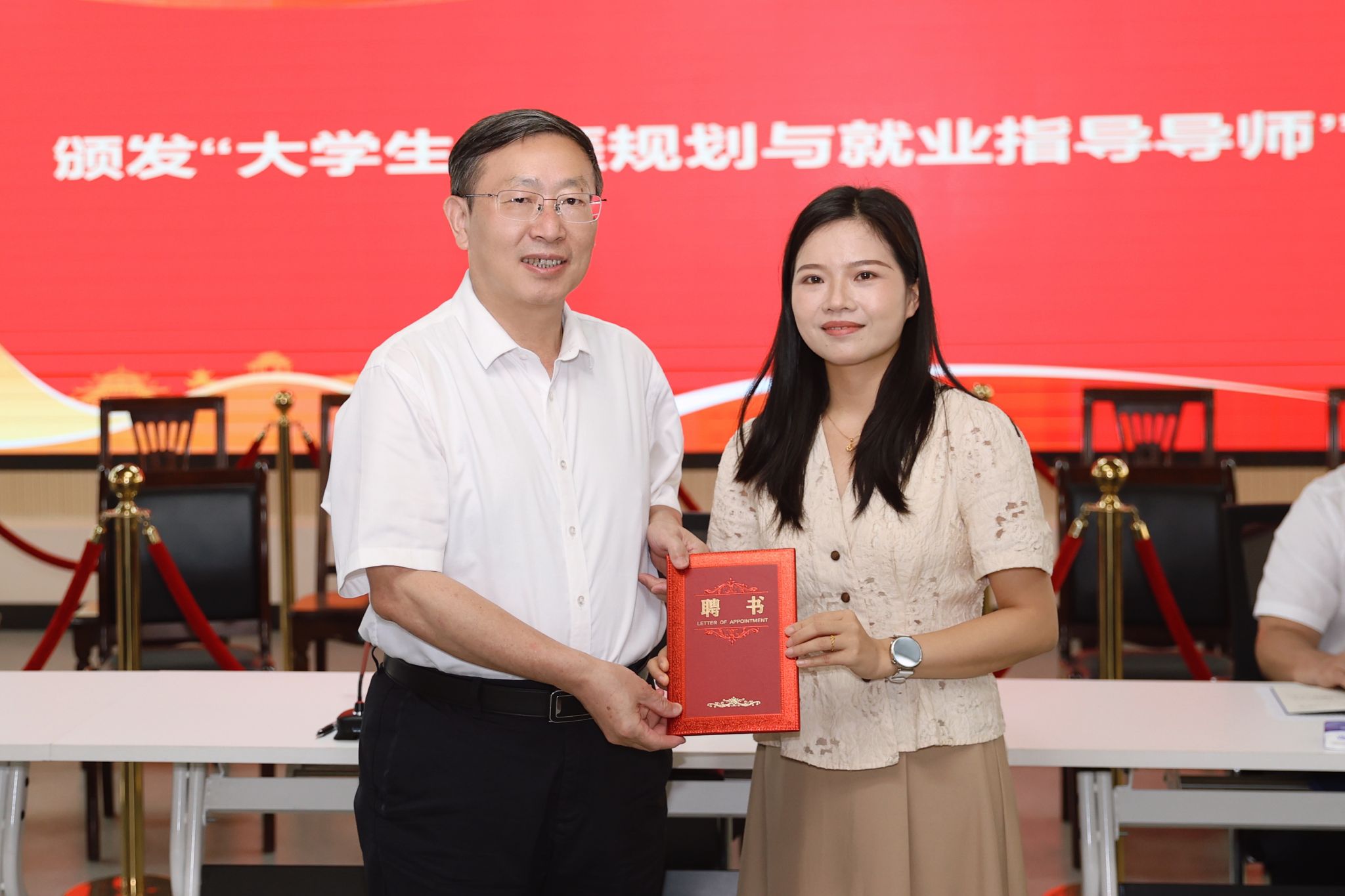 校党委书记卞成林为校友颁发“大学生生涯规划与就业导师”聘书