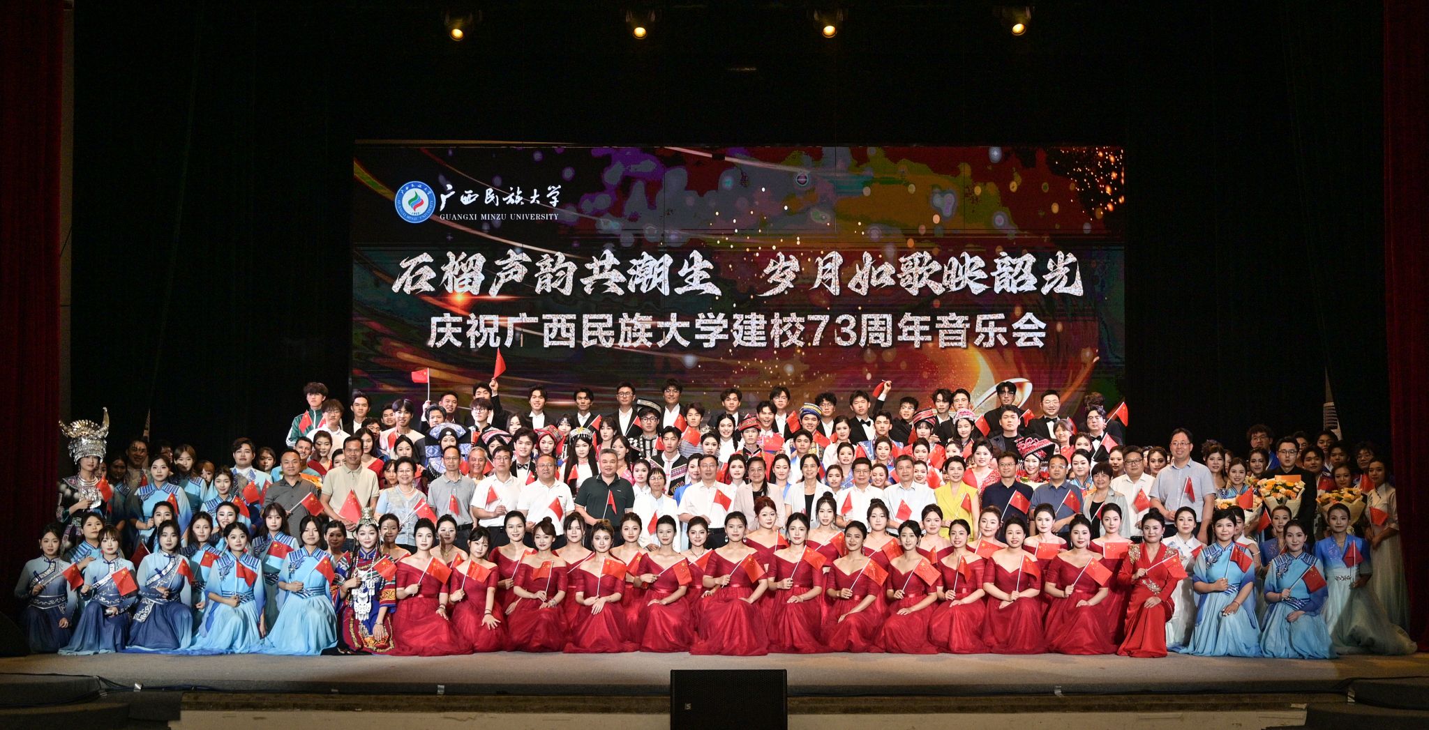 【大学生通讯社报道】5月18日晚,广西民族大学庆祝建校73周年音乐会在相思湖校区礼堂举行。校党委书记卞成林,校长韦仕珍,全体在家校领导和校友代表、各学院师生代表一起观看演出。
