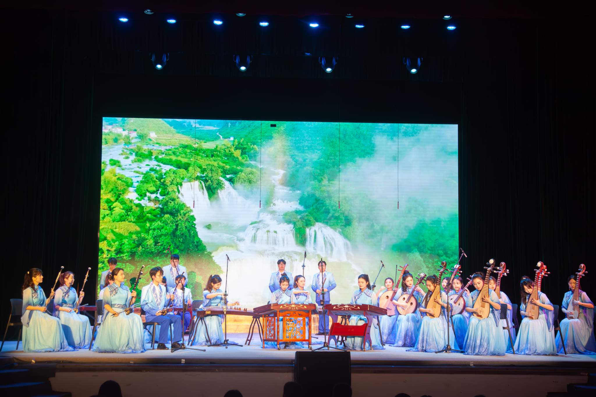 音乐会在广西民族大学民乐团演奏的民族管弦乐作品《北京喜讯到边塞》中拉开序幕。随后,《瑶族舞曲》、民族管弦乐《好汉歌》、现代民族室内乐《就是哪吒》及《匏古情》等节目通过富有创意的现代表达,既传承了民族音乐的精髓,又赋予其时代新意,精彩的演绎赢得现场观众经久不息的掌声。