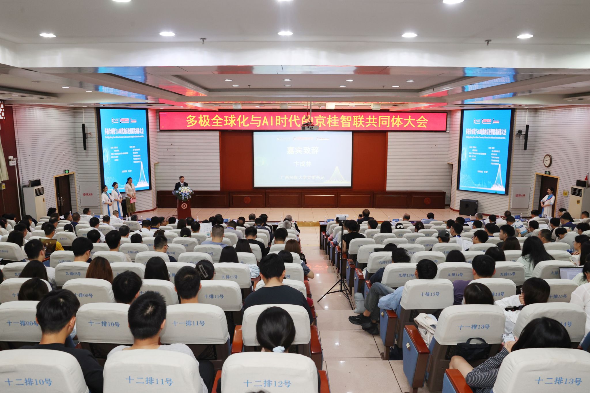 【大学生通讯社报道】5月24日,多极全球化与AI时代的京桂智联共同体大会在广西民族大学相思湖校区举行。校党委书记卞成林,校长韦仕珍,自治区教育厅科研管理处处长、二级巡视员黄青云,对外经济贸易大学校长赵忠秀,中国国际贸易学会会长金旭,上海国际问题研究院学术咨询委员会主任杨洁勉,北京大学区域国别研究院副院长翟崑,润建股份有限公司执行总裁李群伟,老挝沙湾拿吉大学副校长西提赛教授出席开幕式,共同祝贺中国国际贸易学会区域国别研究专业委员会和广西民族大学老挝研究院的成立。韦仕珍主持开幕式。