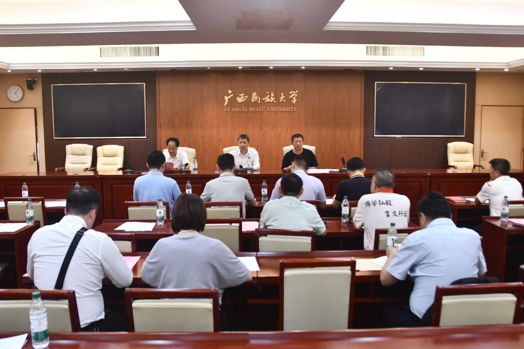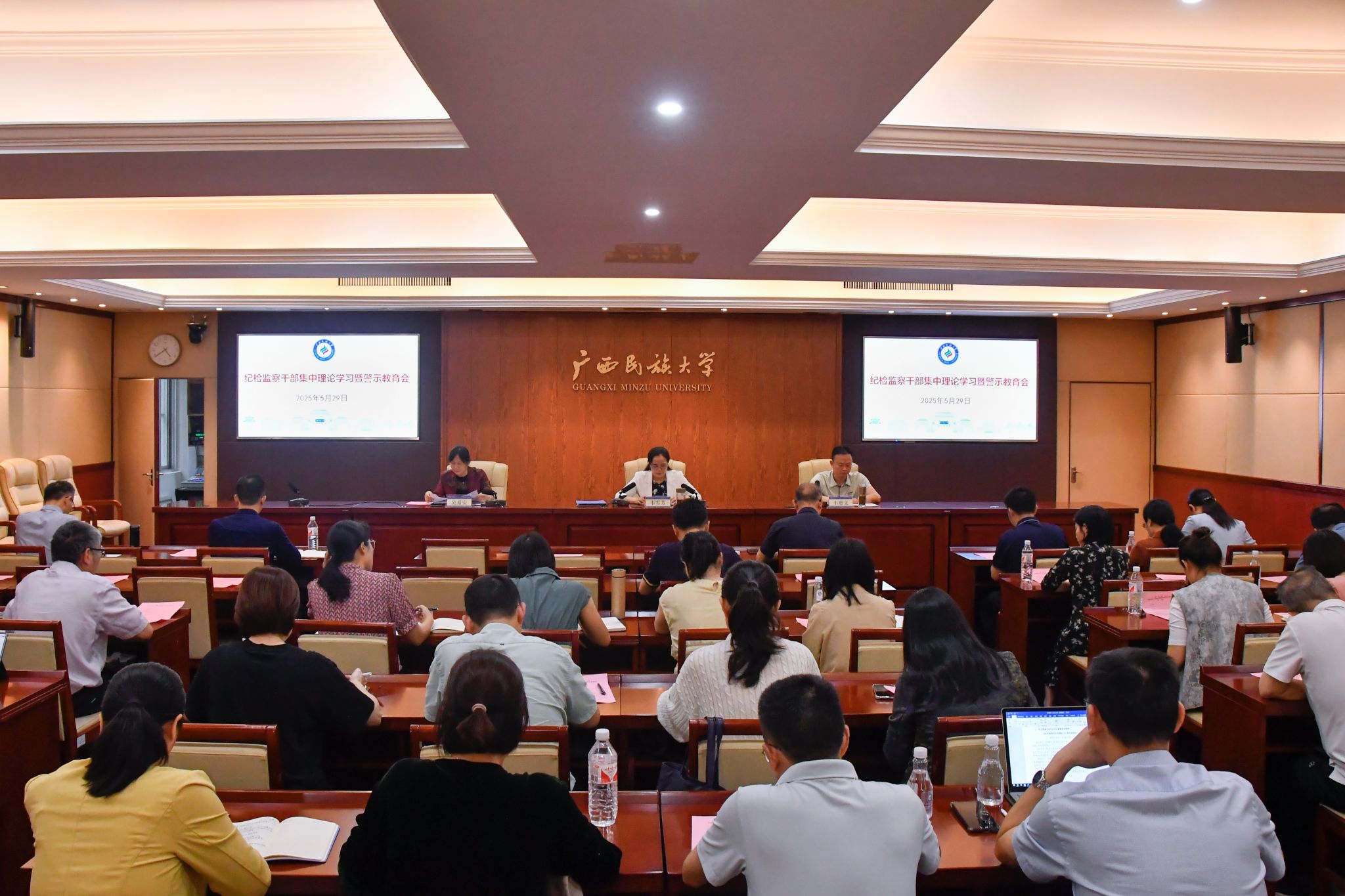 5月28日,吕俊彪主持召开广西民族大学2024年单位绩效考核现场述职评审会,2024年单位绩效考核评分优秀且满足一等条件的各单位负责人就工作成果、工作重点、工作亮点等方面进行现场述职。(初审/周娟 复审/荣子卿 终审/孙寿媚)