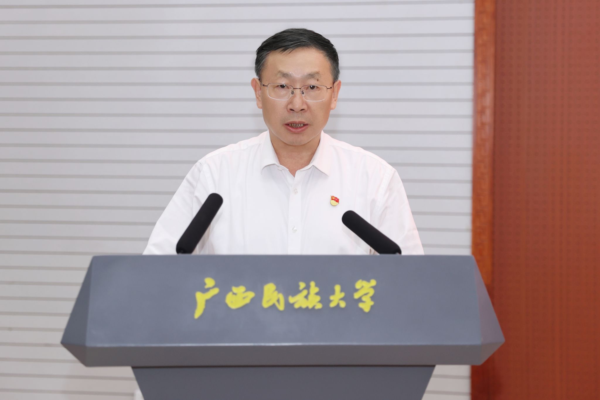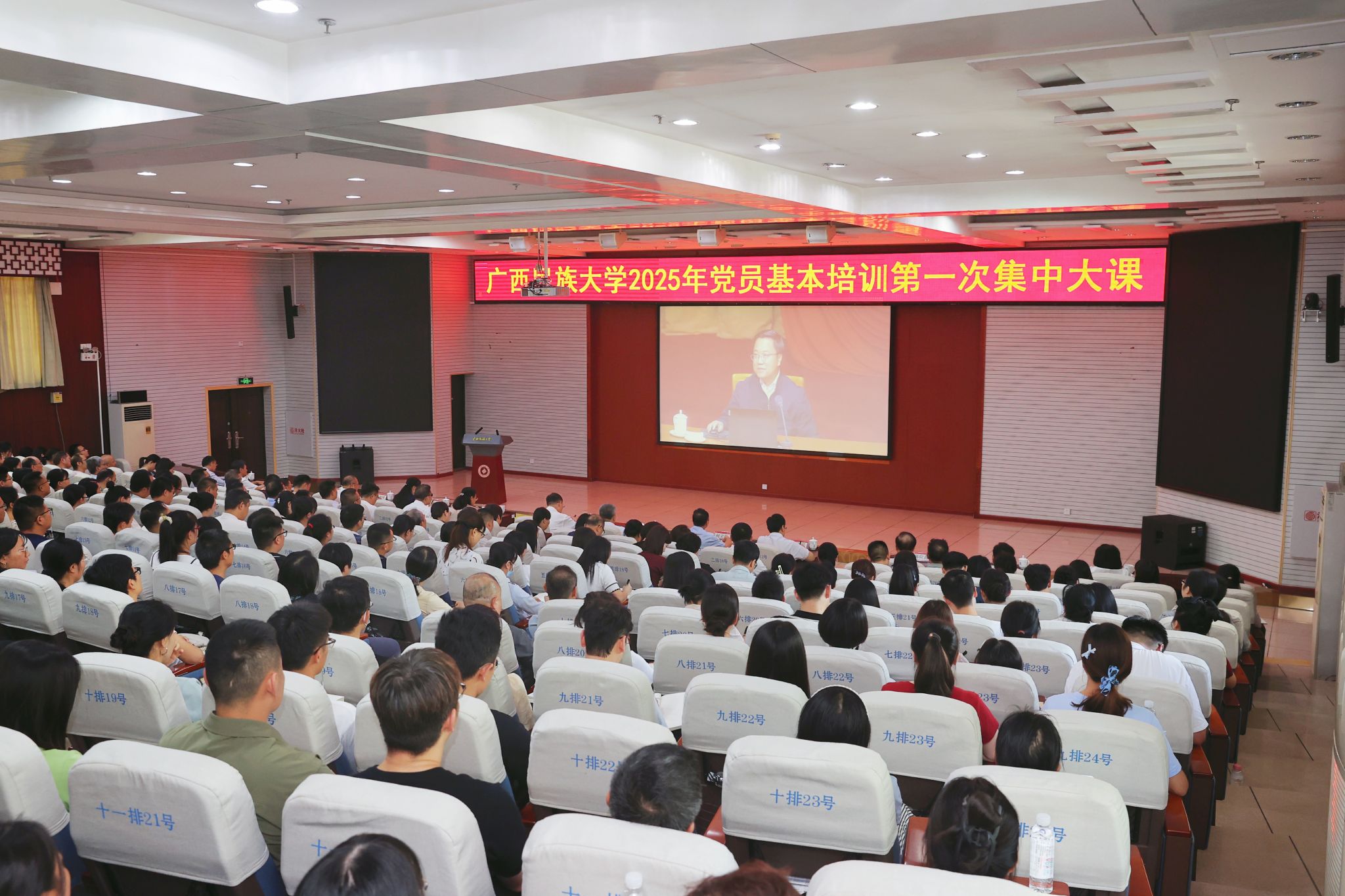 6月13日下午,广西民族大学举行2025年党员基本培训第一次集中大课,共同学习中央党校(国家行政学院)党的建设教研部副主任祝灵君教授主讲的“学习贯彻习近平总书记关于加强党的作风建设的重要论述和中央八项规定精神”专题视频课程。校党委书记卞成林主持集中大课并作动员部署讲话,全校近8000名师生党员在主会场及67个分会场参加培训。自治区党委教育工委组织部负责同志到会旁听。