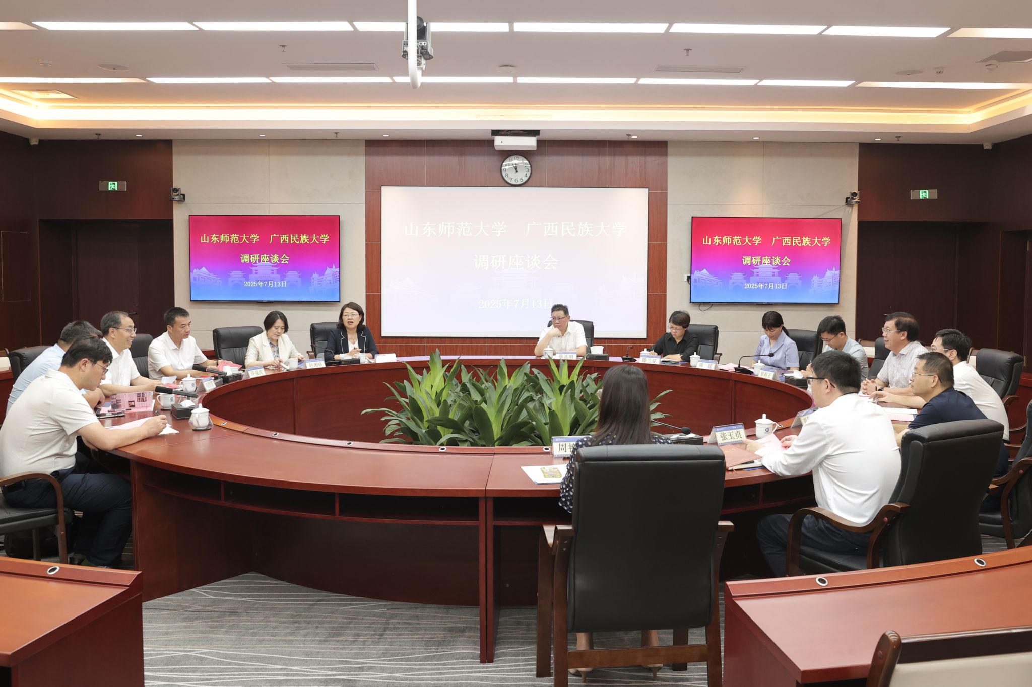 冯继康介绍了山东师范大学的基本情况。他表示,广西民族大学在党的建设、学科建设及国际交流合作等方面积累了丰富经验,希望两校深化交流合作,相互借鉴,实现优势互补,共同探索开放办学新路径。