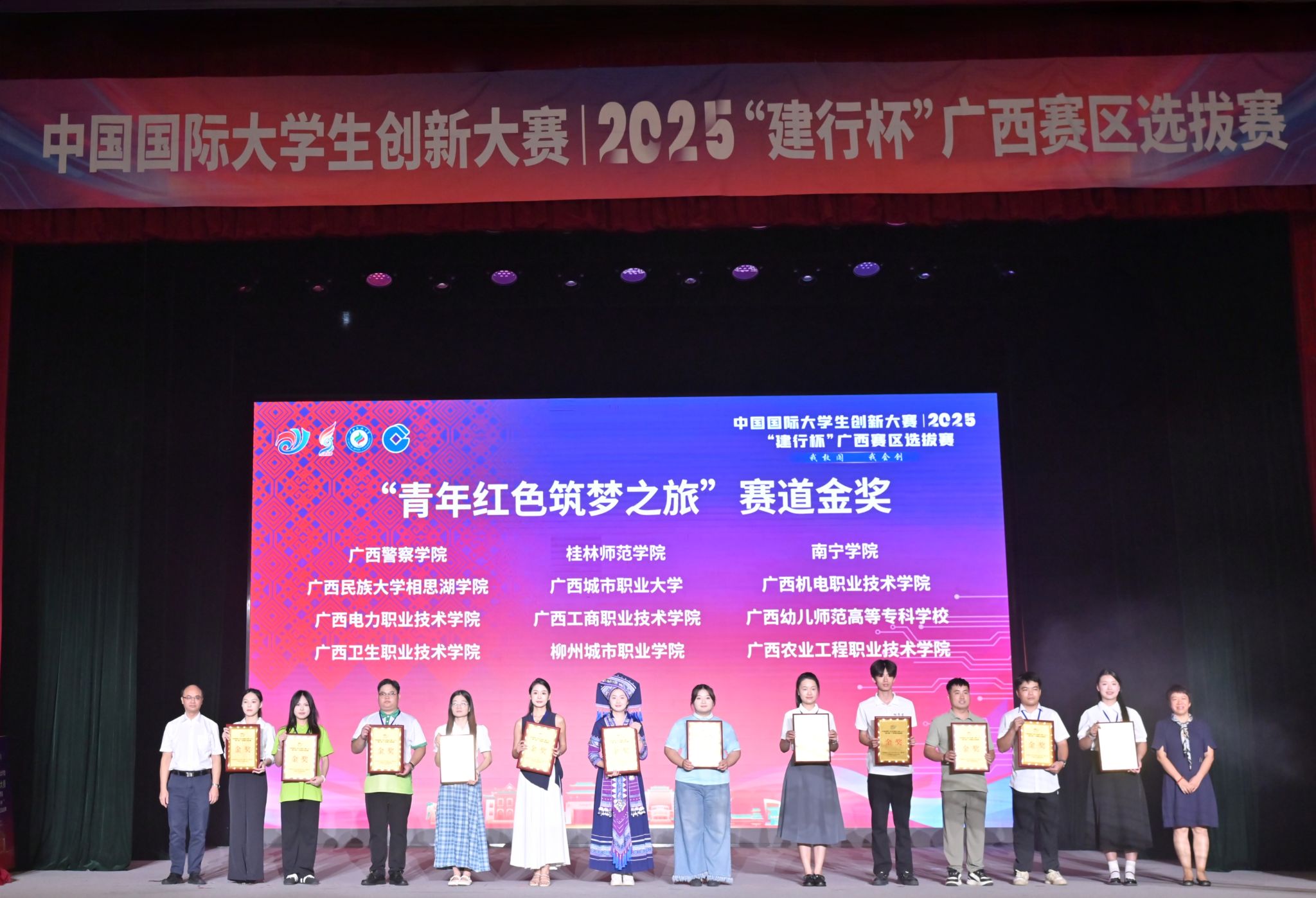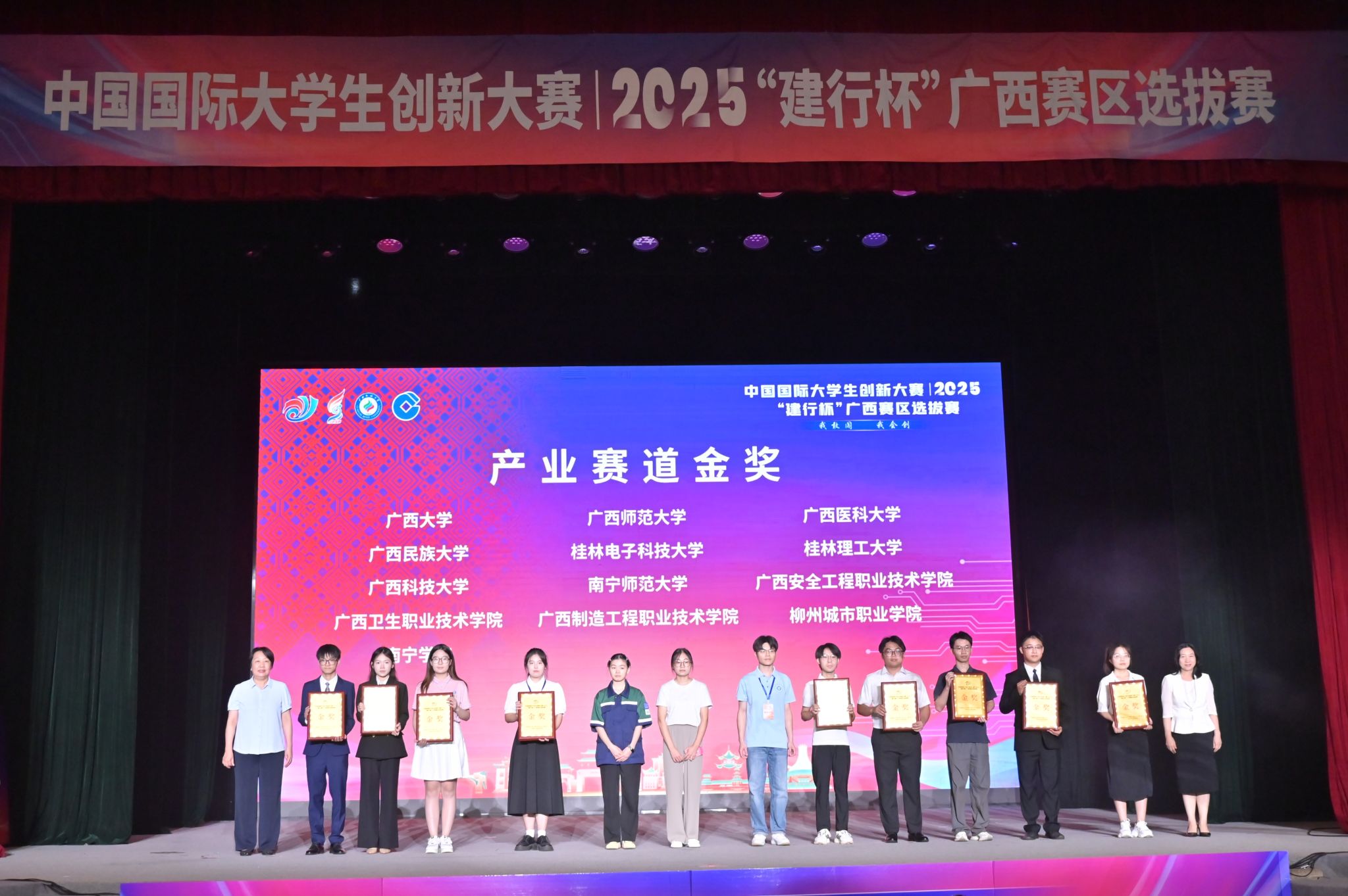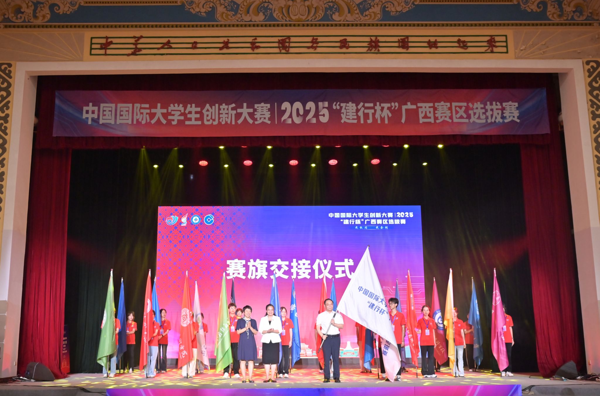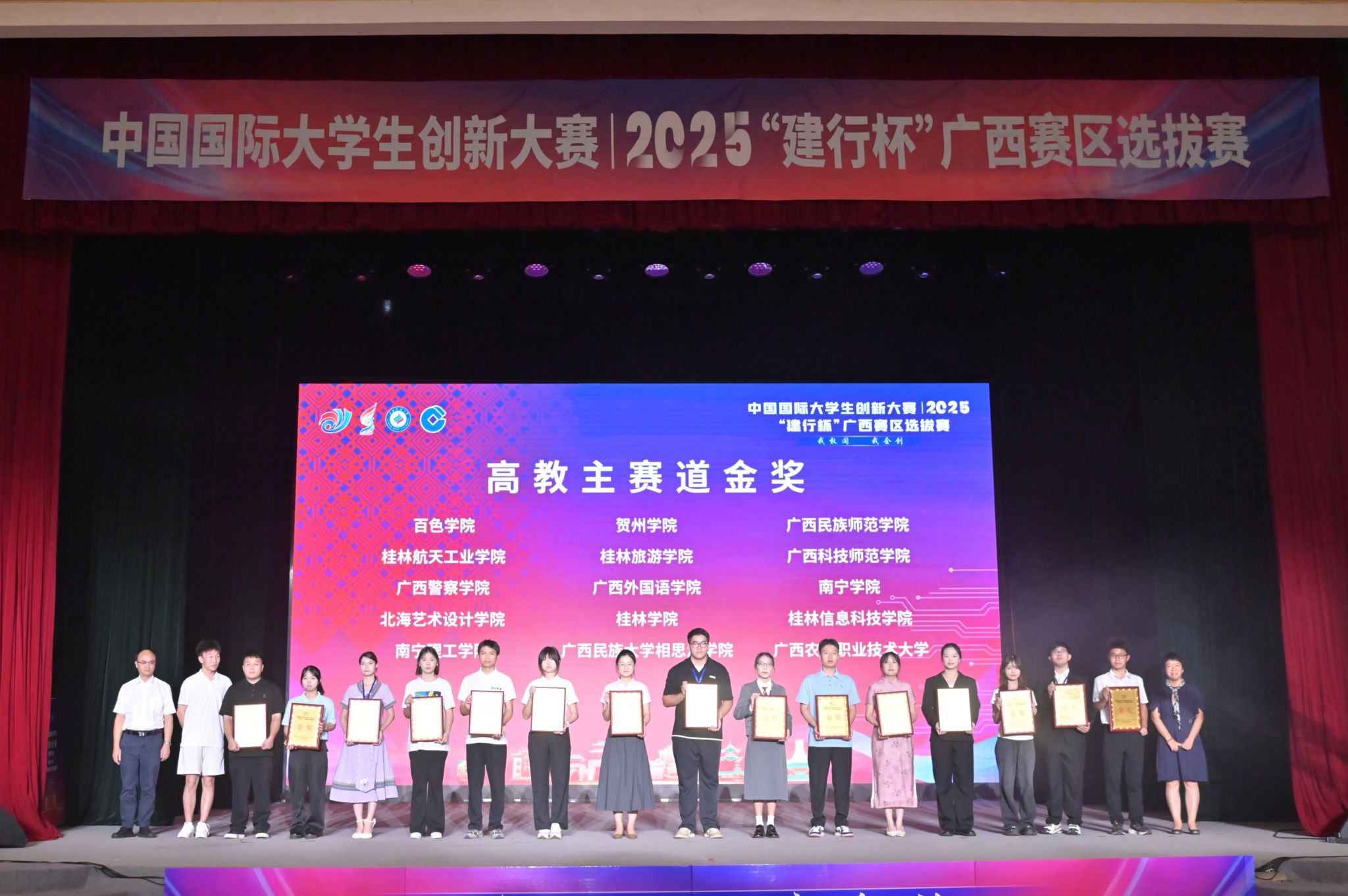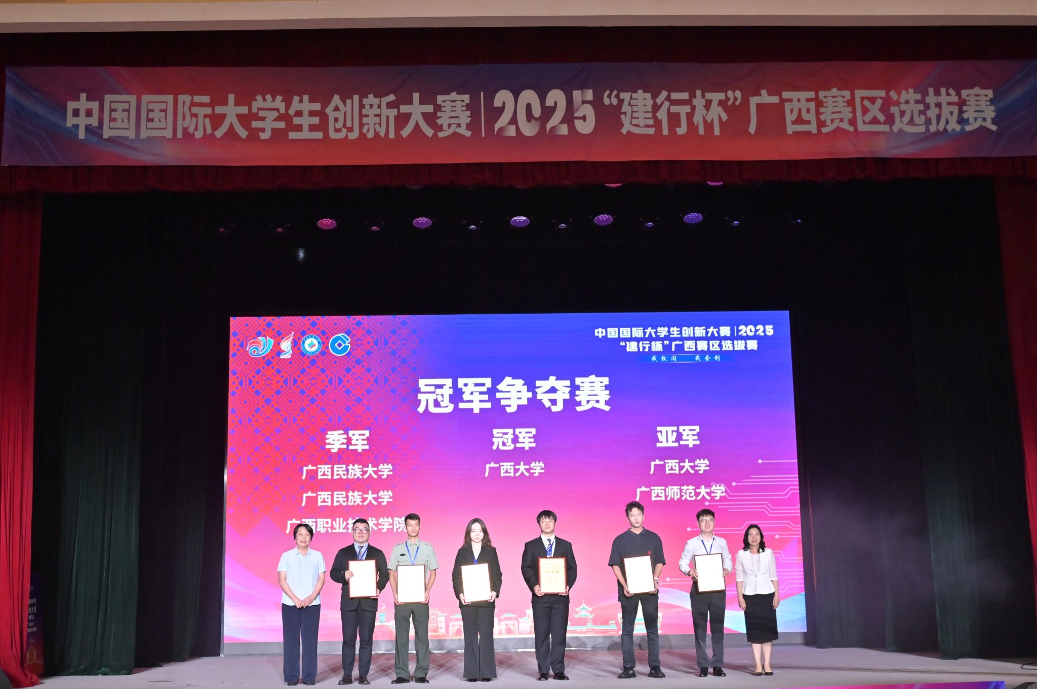 【大学生通讯社报道】7月18日上午,中国国际大学生创新大赛(2025)“建行杯”广西赛区选拔赛在广西民族大学落幕。广西壮族自治区教育厅副厅长张旭凤、广西民族大学校长韦仕珍、中国建设银行广西分行副行长李海峰出席闭幕式并致辞。全区有关部门领导、各高校领导、师生代表共1000余人现场参加活动。闭幕式通过网络同步直播。