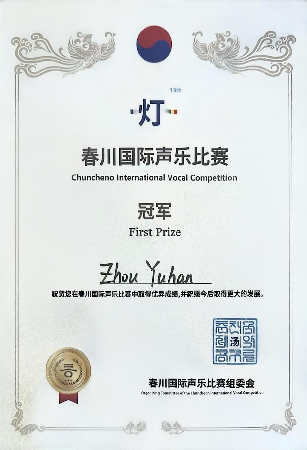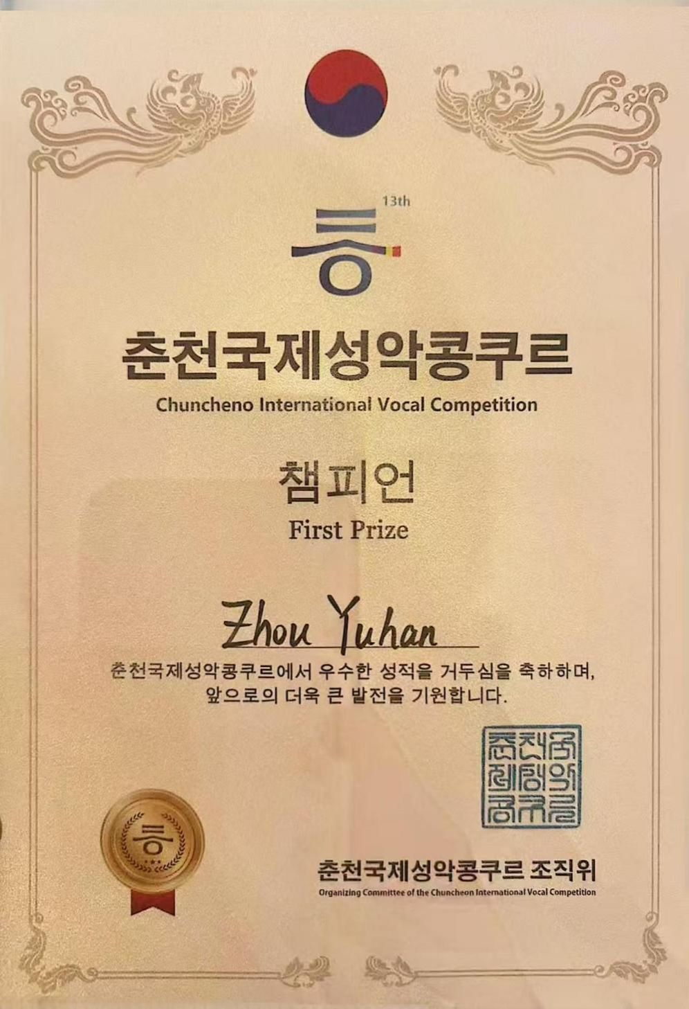 8月8日,第十三届韩国春川国际声乐比赛颁奖典礼在春川翰林大学落下帷幕,广西民族大学艺术学院/民歌学院2024级音乐表演专业学生周裕涵凭借过硬的实力斩获本届赛事中国艺术歌曲本科组冠军。