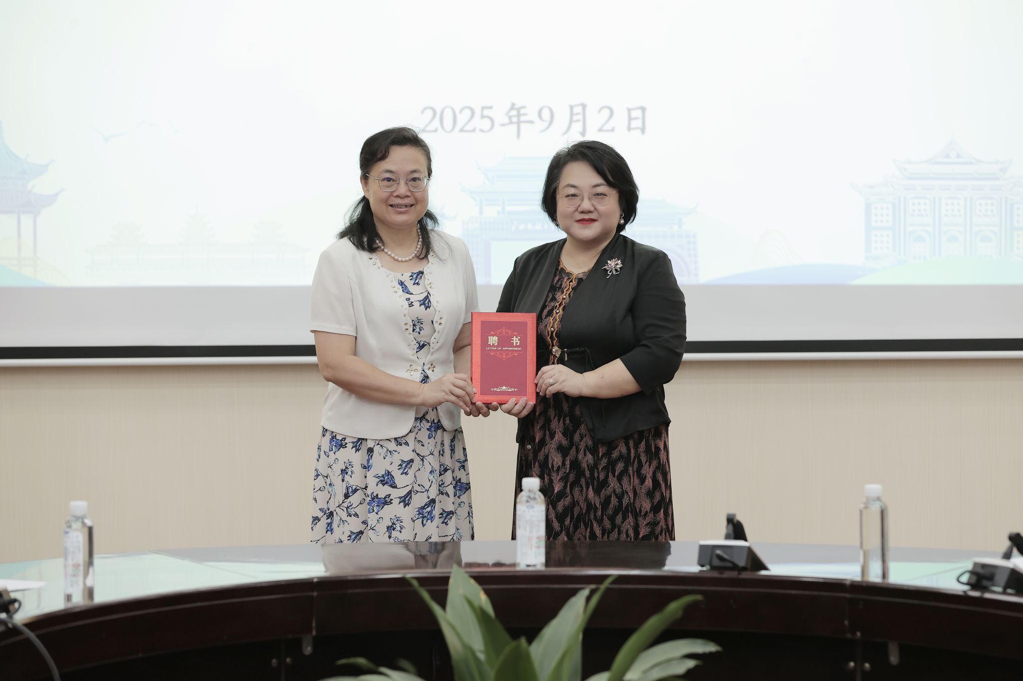 校长韦仕珍为天津大学罗青教授颁发教育国际化指导专家聘书