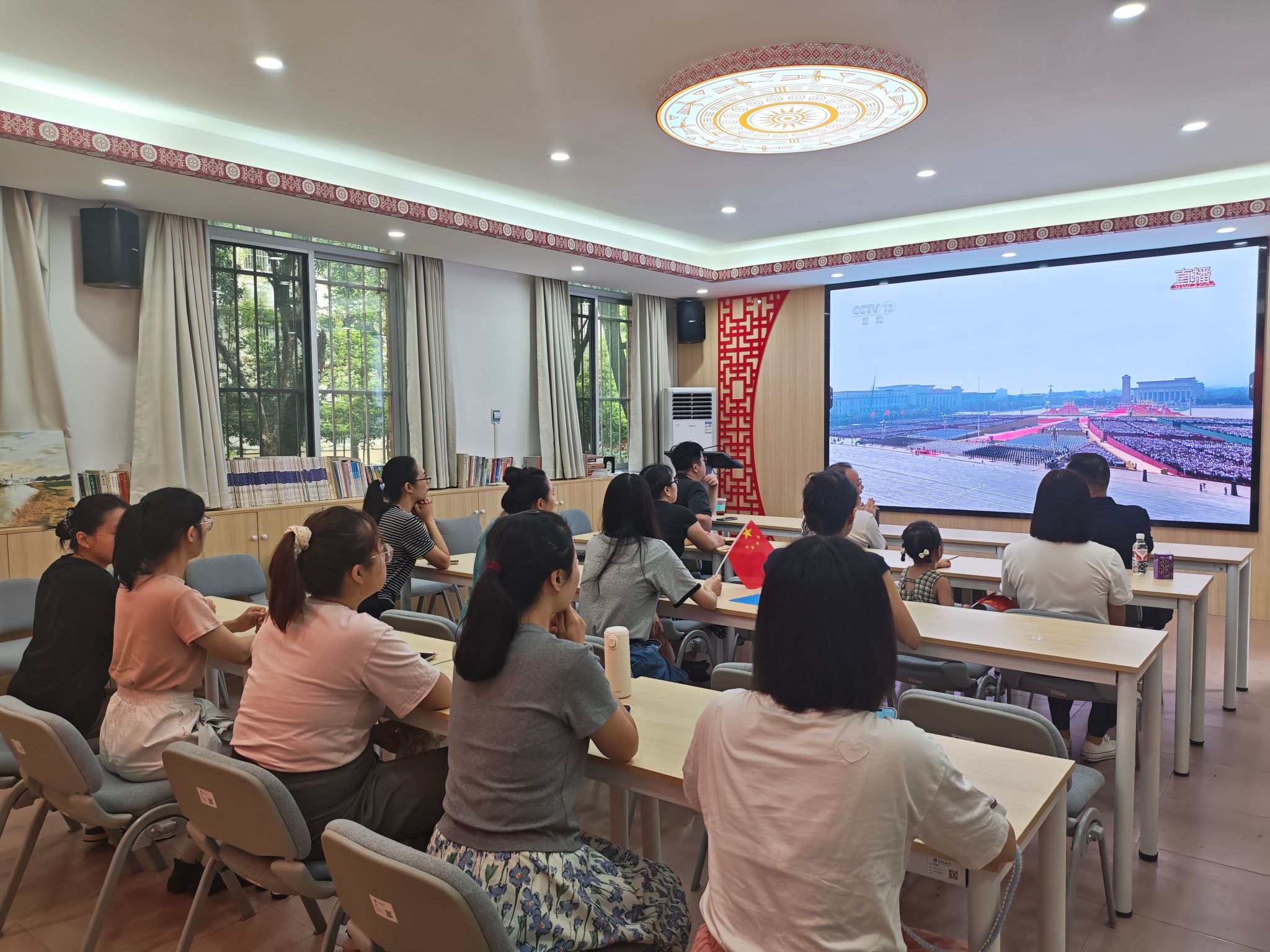 9月3日,纪念中国人民抗日战争暨世界反法西斯战争胜利80周年大会在北京天安门广场隆重举行,中共中央总书记、国家主席、中央军委主席习近平发表重要讲话并检阅受阅部队。广西民族大学师生怀着热切的心情相聚在报告厅、会议室、体育馆等地,以各种形式积极收看大会直播,认真学习习近平总书记重要讲话精神。