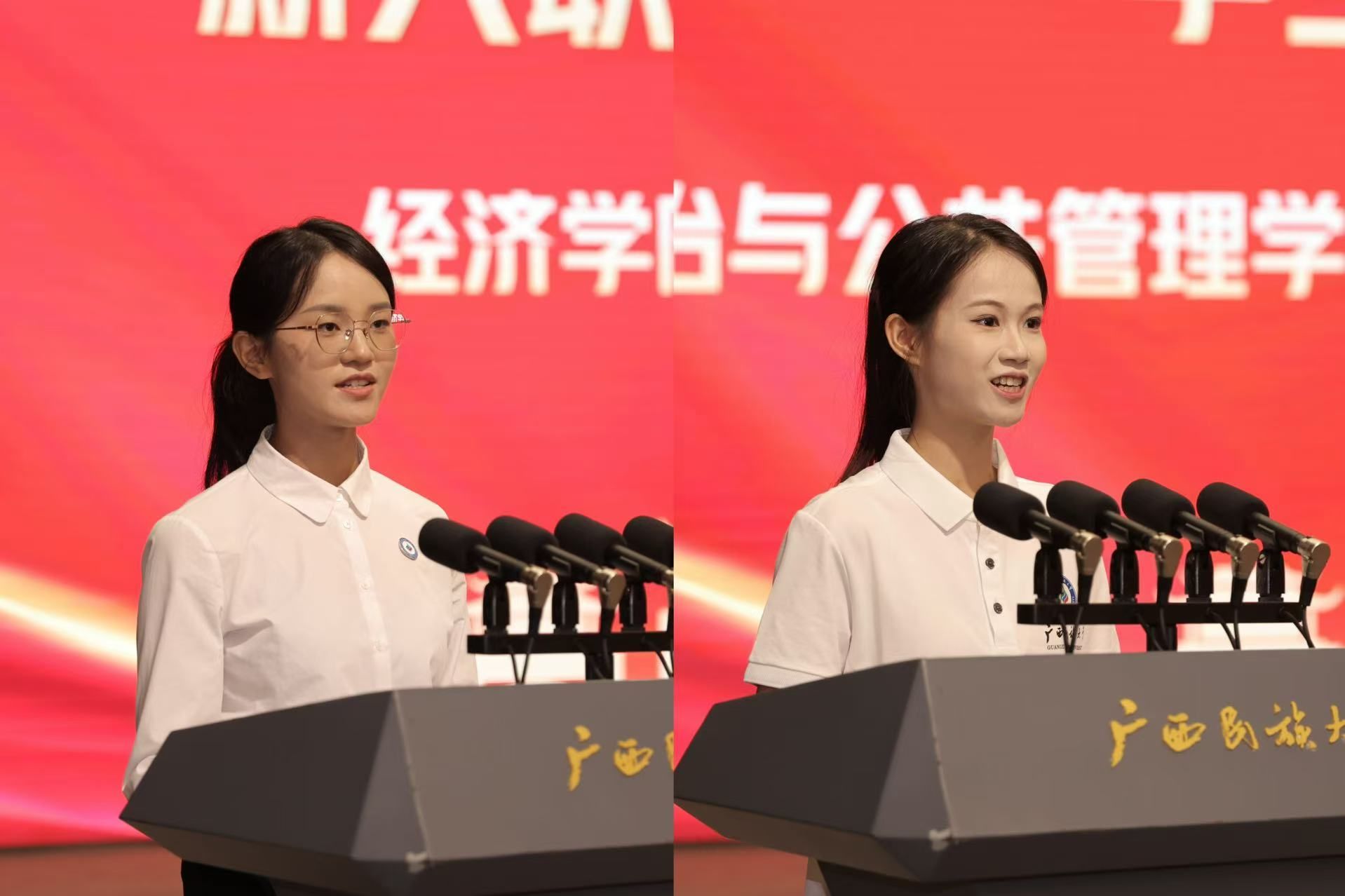 新入职教师代表、经济学院赵攀婷老师和政治与公共管理学院2022级本科生蒙鑫美分别发言