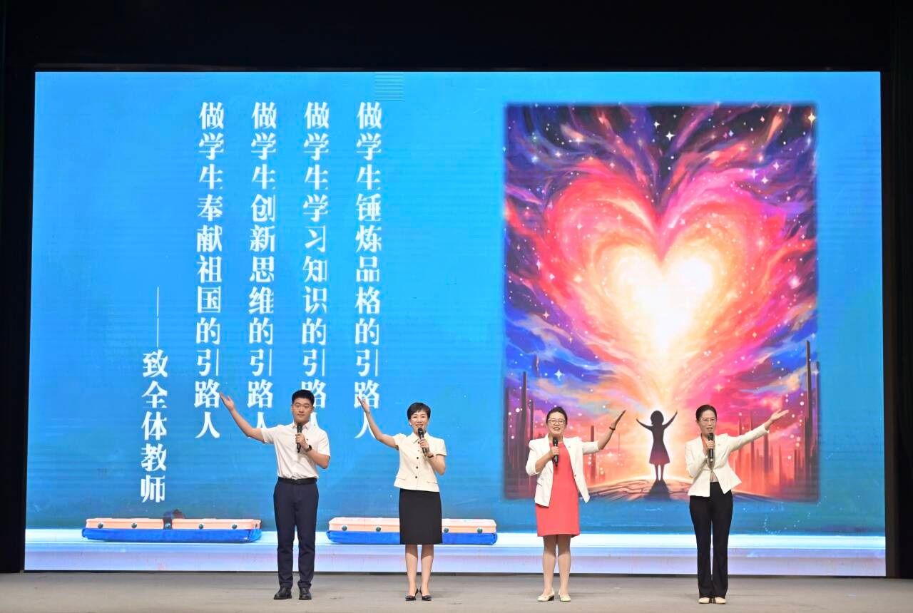 会后,校领导与参会人员一起观看了由学校大学生合唱团带来的小组唱《老师,我想你》,传媒学院李琳、尹力、徐辉丽和龙腾四位老师讲述的育人故事《师德如水润相思》,以及艺术学院/民歌学院严当当老师和翁鹤老师演绎的原创歌曲《九月的牵挂》。(初审:周娟 复审:李建瑾 终审:孙寿媚)
