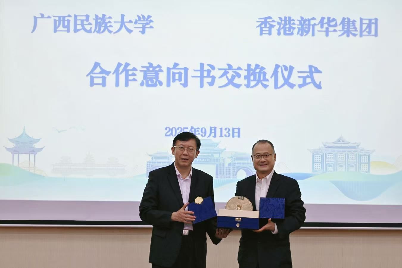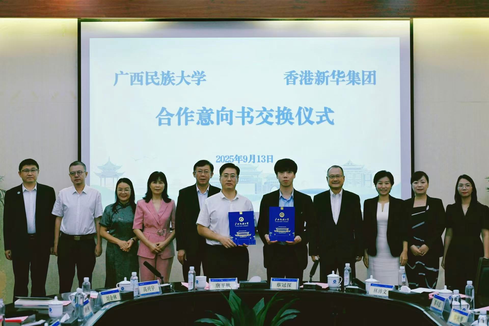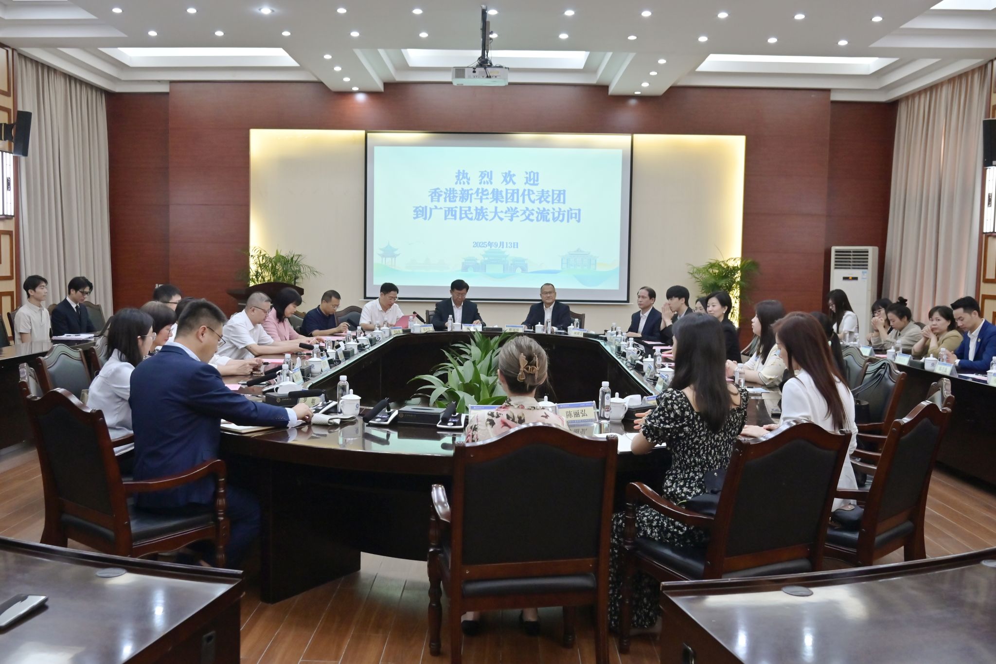 蔡冠深表示,香港新华集团在东盟地区深耕多年,积累了丰富的资源和人脉,在文化教育领域成果显著,希望能与广西民族大学在面向东盟的国际交流板块开展全方位合作,依托学校非通用语种的专业优势与集团当地资源,积极推进语言培训、文化交流、联合人才培养及共建研究基地等各领域合作,探索人工智能与非通用语种的融合应用及非物质文化遗产的国际传播。