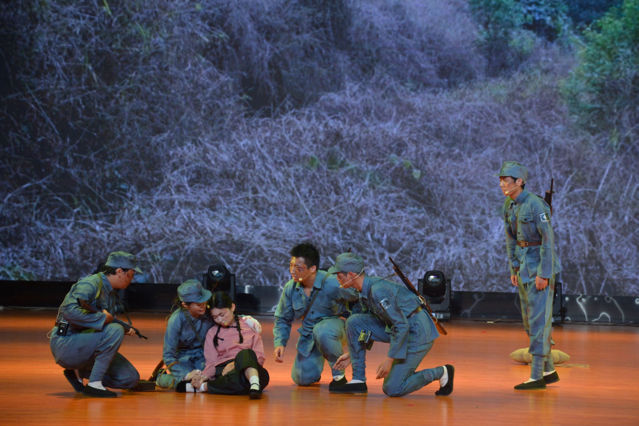 歌曲《如愿》旋律柔和但充满力量,歌词串联起不同时代的坚守与奉献,既有对前辈们奋斗历程的崇高致敬,也是对即将踏上军旅的新兵们的殷切嘱托。广西民族大学话剧团带来的话剧《仗》,以抗日战争为背景,再现了村民与军人并肩作战、生死与共的感人故事,抒写了浓厚的军民鱼水情。歌曲《士兵的桂冠》旋律激昂,是军人刚毅品格的音乐写照,节奏铿锵有力,引发全场共鸣,观众齐声合唱,将现场氛围推向高潮。