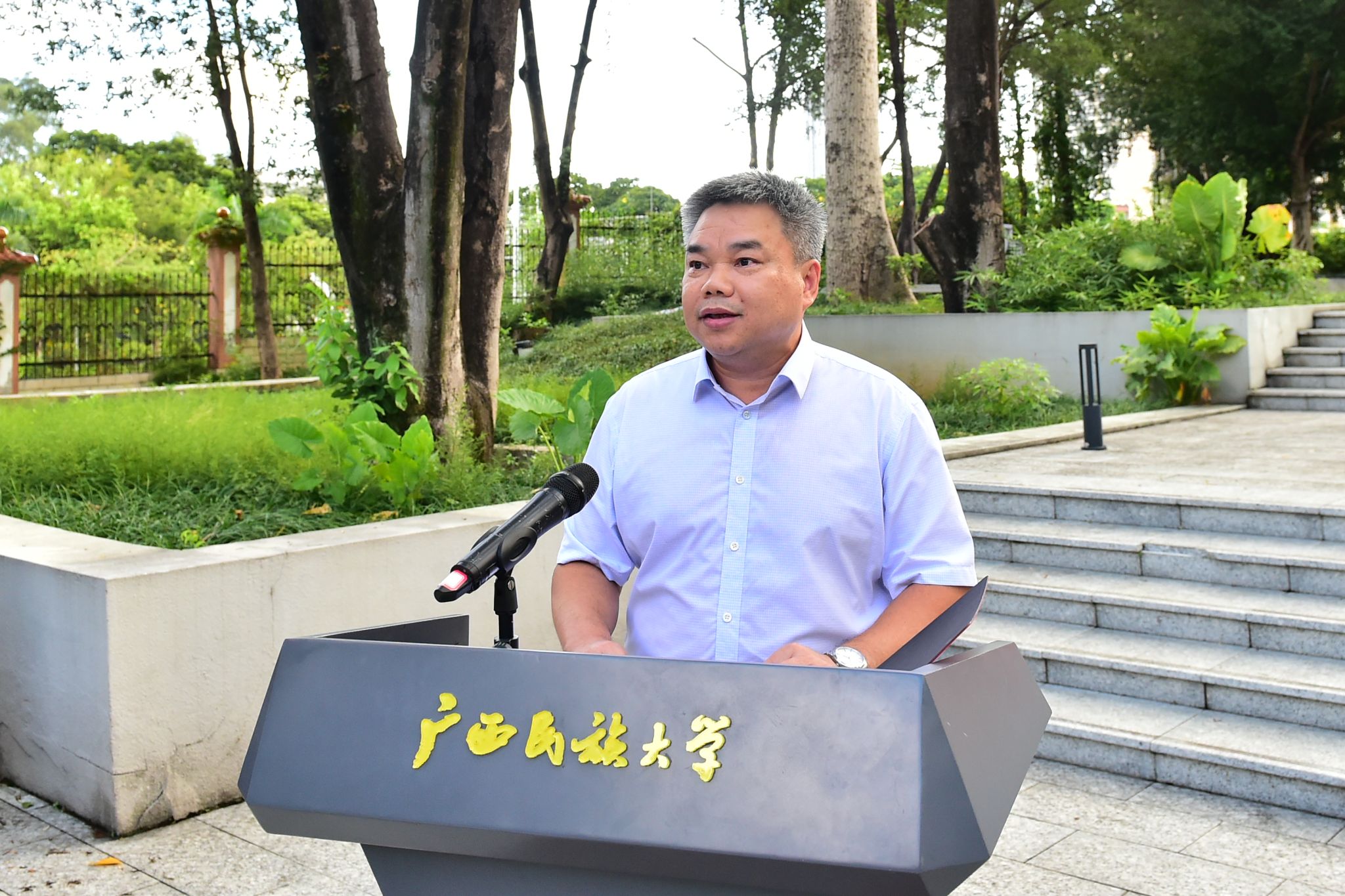 【大学生通讯社报道】9月15日下午,广西民族大学2025年秋季大学生参军入伍欢送仪式在铸牢中华民族共同体意识体验园举行。校党委书记唐平秋出席仪式并讲话,校党委副书记陈铭彬主持仪式,学校有关职能部门、各学院负责同志参加仪式。