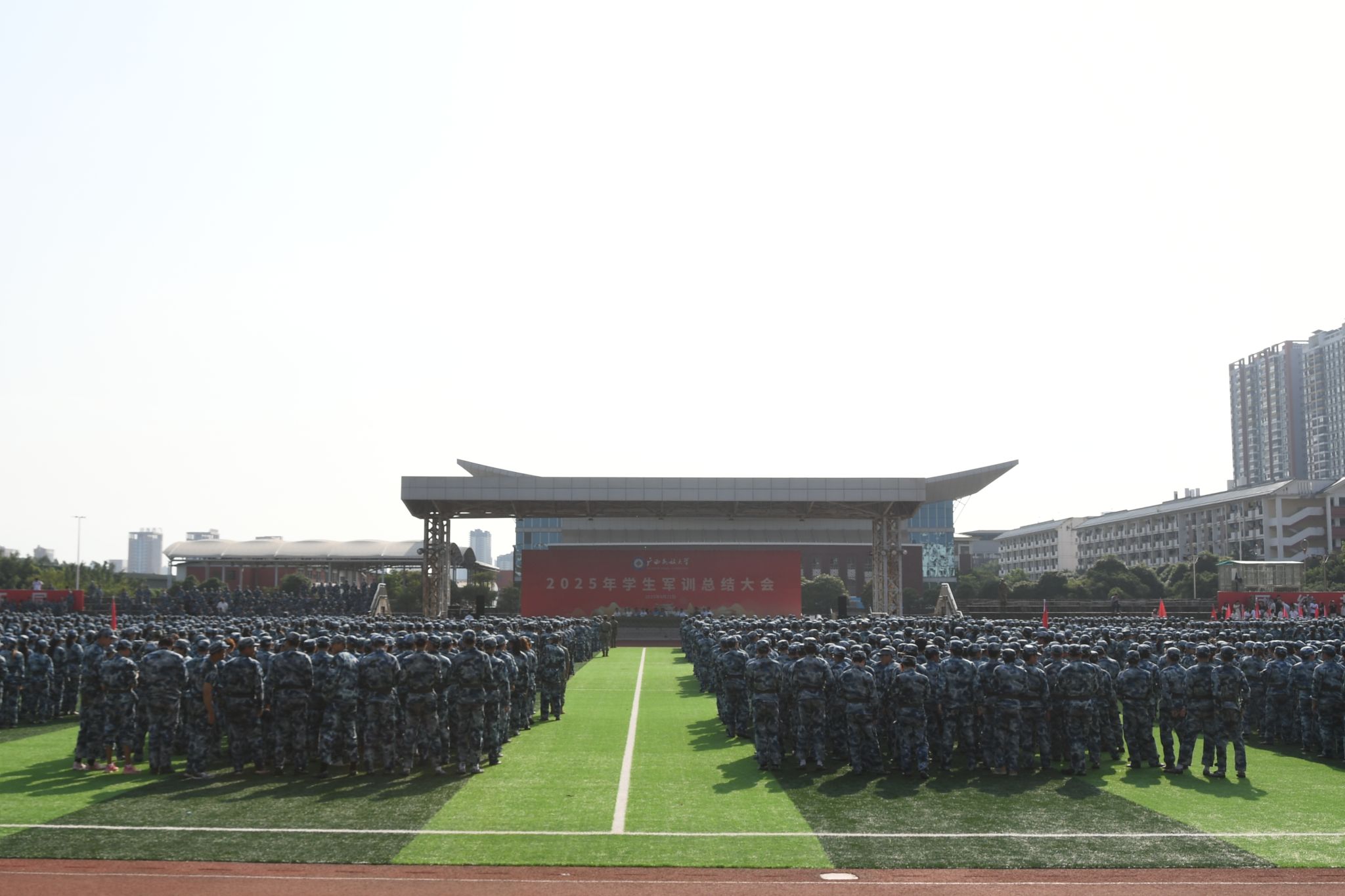 “向前!向前!向前!我们的队伍向太阳……”伴随着激昂的《中国人民解放军军歌》,2025年学生军训总结大会圆满落下帷幕。(初审:肖耀科 编辑:韦丽娜 复审:韦利坤 李建瑾 终审:孙寿媚)
