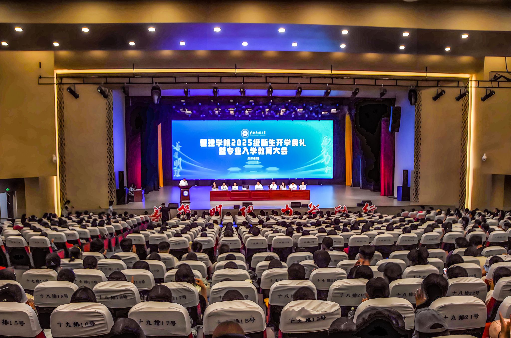 9月16日,校党委常委、副校长蔡高根在广西民族大学管理学院2025级新生开学典礼上,向新生深情寄语。他鼓励同学们:以“厚德博学”武装头脑,以“和而不同”拥抱成长;要勇于投身实践,将知识转化为力量,善于利用学校提供的资源锤炼本领,在实现中华民族伟大复兴的中国梦的实践中放飞青春理想。(初审/郑慧 图文/赵苑岑 编/梁晶晶 复审/李建瑾 终审/孙寿媚)
