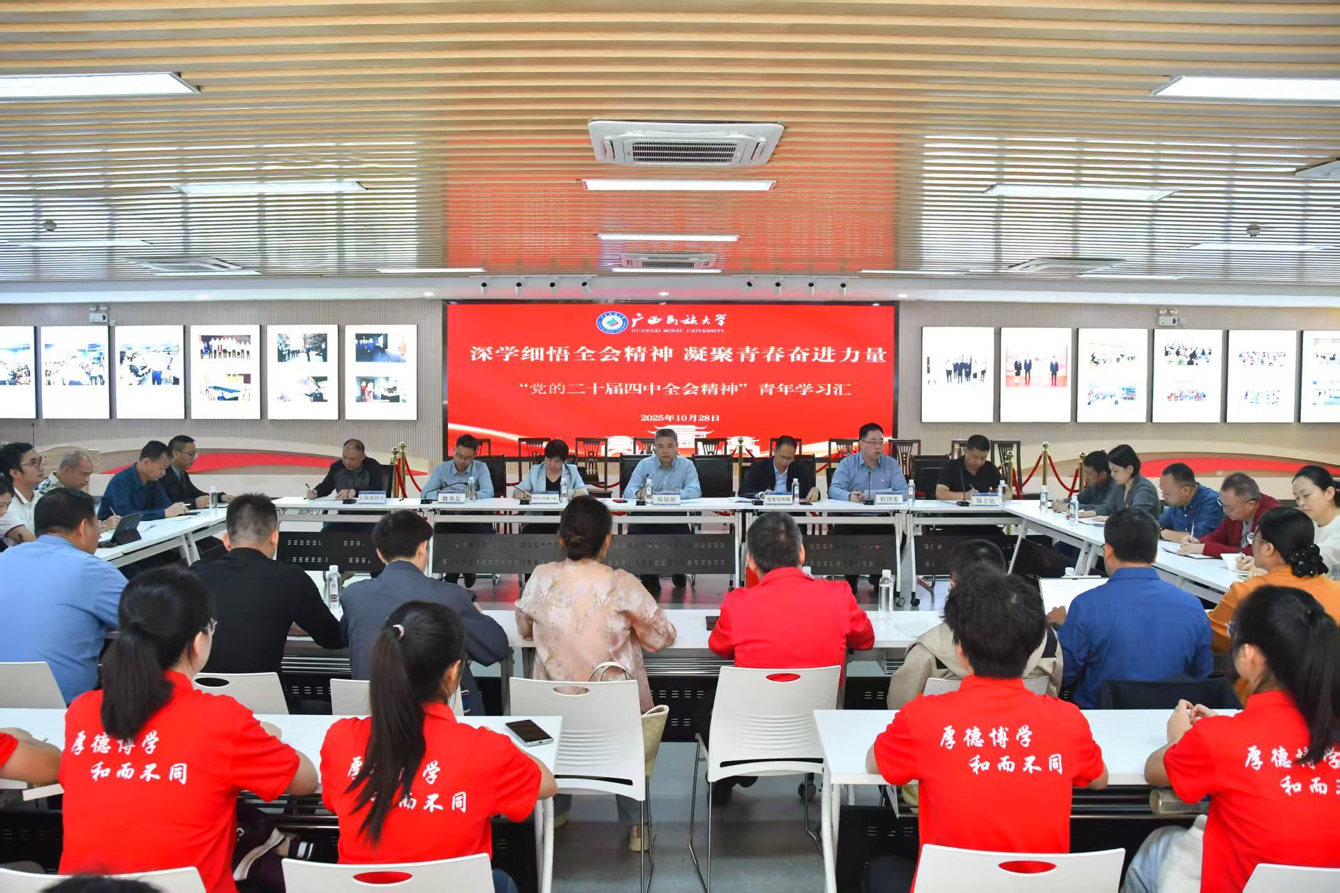 【大学生通讯社报道】10月28日上午,广西民族大学在新时代“我与祖国共成长”党团主题活动文明实践所举行学校党的二十届四中全会精神青年学习汇。校党委副书记陈铭彬出席会议并讲话。学校自治区青马班学员代表,校级青马班学员代表与会。