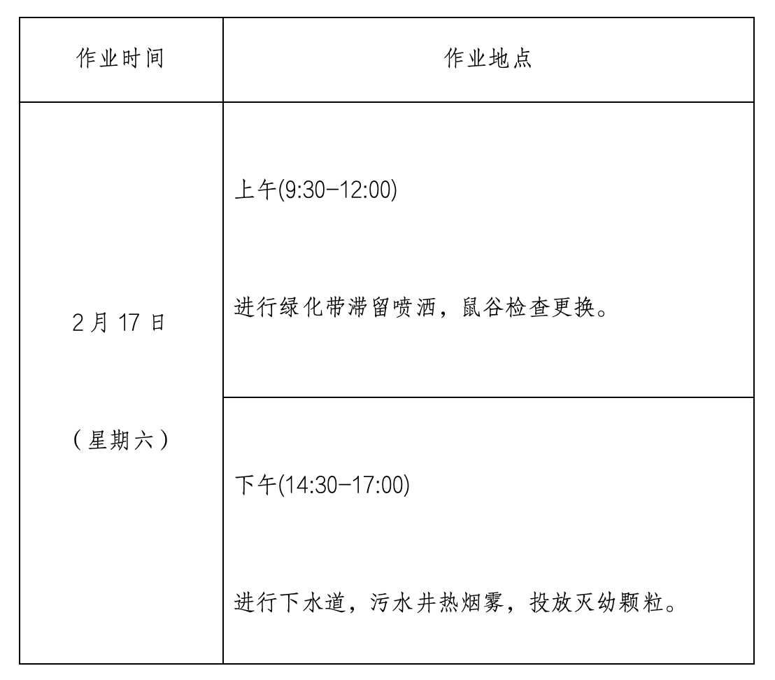 为做好校园公共区域绿化病虫害防治工作,有效保护校园生态环境,广西康安环境卫生管理有限公司将于2024年2月17日对相思湖校区道路两侧的树木、绿化带及下水道、污水井,老鼠屋开展病虫害防治消杀作业(详见附件)。