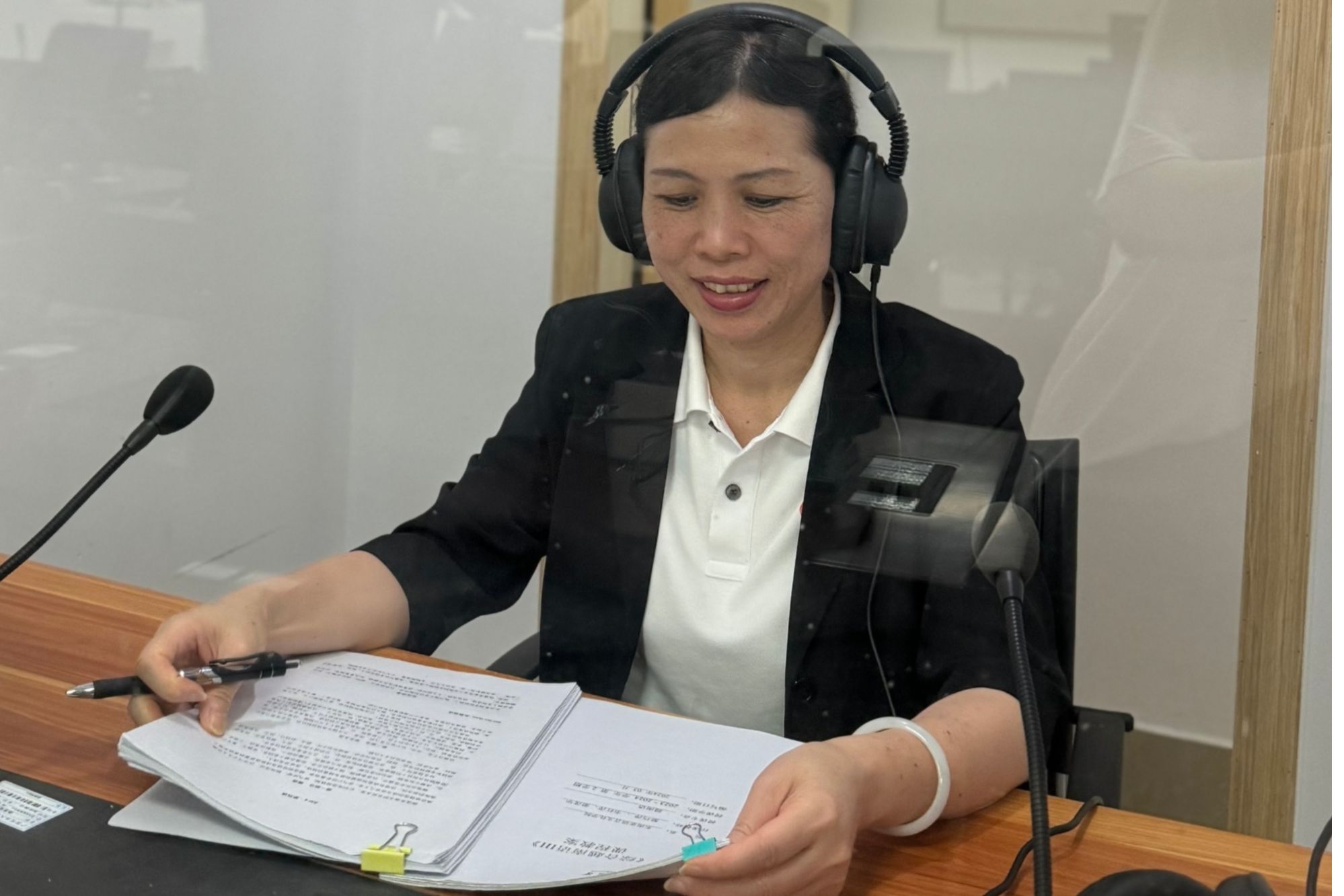 黎巧萍老师在同声传译教室进行越南语翻译教学