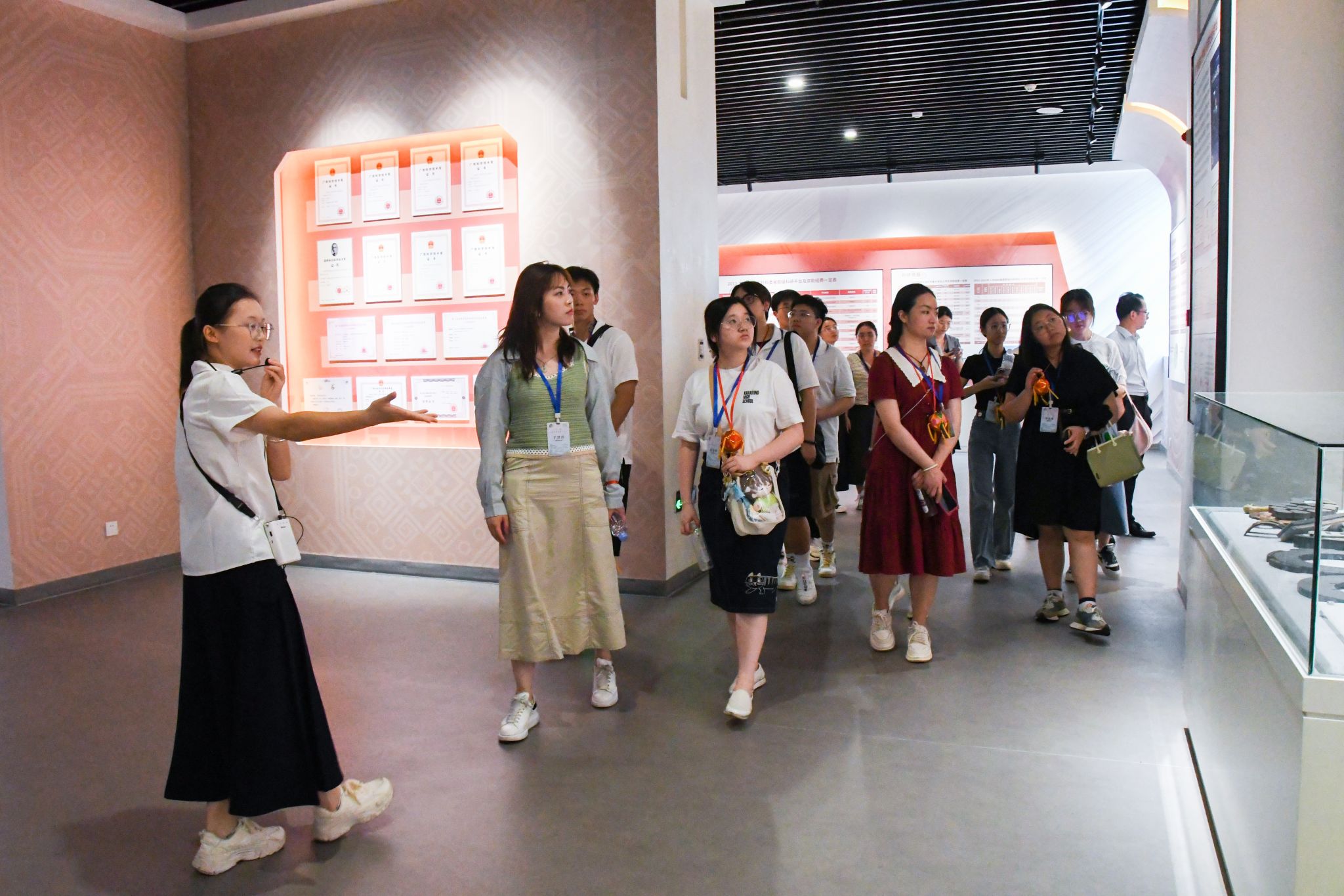 在铸牢中华民族共同体意识体验园,青少年们沉浸在丰富多彩的展示内容中,共同领略中华民族多元一体的文化魅力。体验园融合石刻、浮雕、彩绘、壁画等多种艺术形式,展示中华龙、黄河、长江、长城、石榴等中华民族的代表性符号和56个民族的服饰和图腾,生动地展现了各民族交往、交流、交融的美丽画卷。