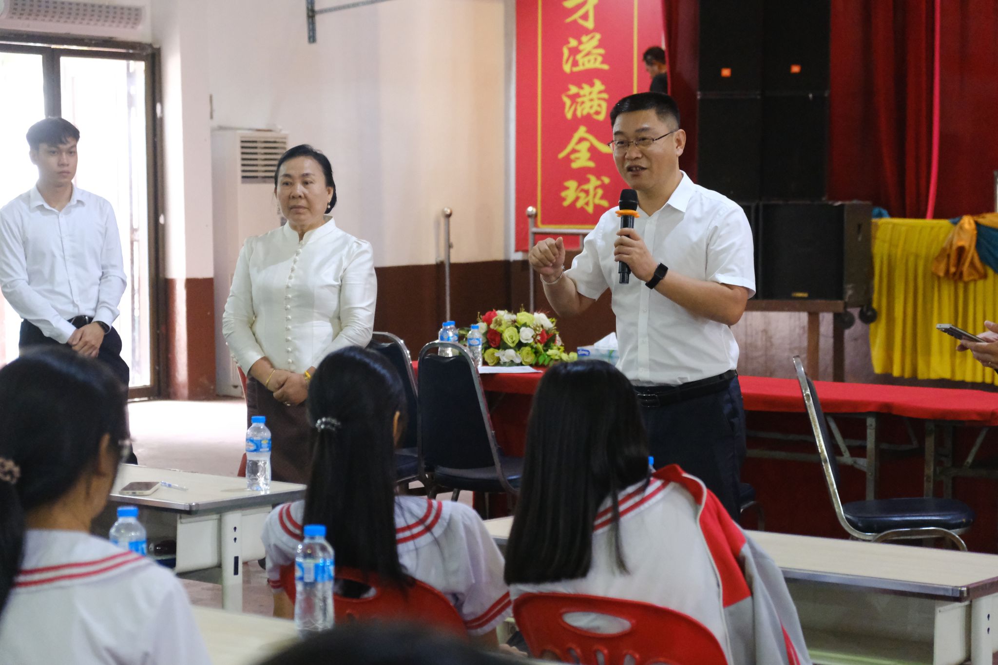 林俊雄表示,老挝国立大学孔子学院作为全球第一家独立开设中文师范本科专业、独立招生培养管理并颁发本科学历学位证书的孔子学院,是老挝国内开展中文教育和中老文化交流互鉴的重要基地,鼓励同学们报考老挝国立大学孔子学院。