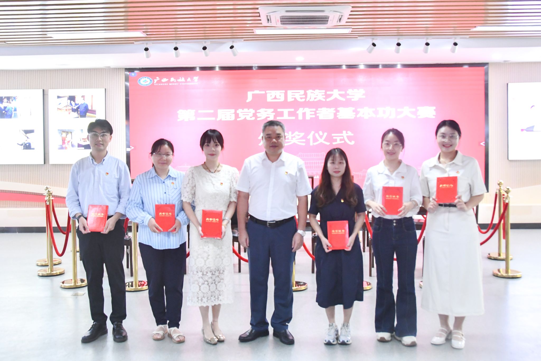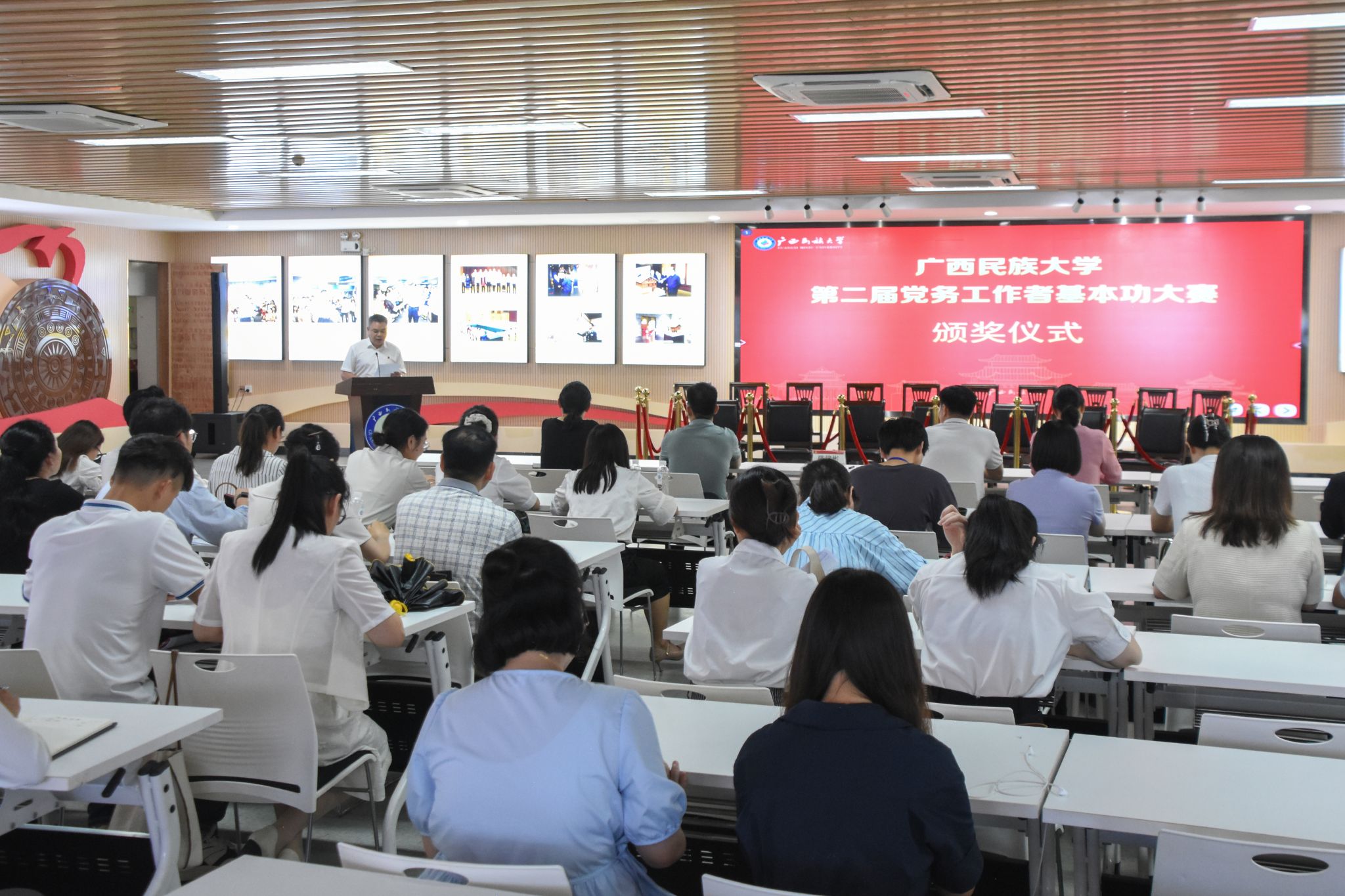 【大学生通讯社报道】6月25日—27日,广西民族大学第二届党务工作者基本功大赛举行。经过角逐,人工智能学院邓宋君等6位选手获一等奖,东南亚语言文化学院陈程等9位选手获二等奖,法学院黄现清等14位选手获三等奖。学校党委副书记陈铭彬为获奖选手颁发证书。
