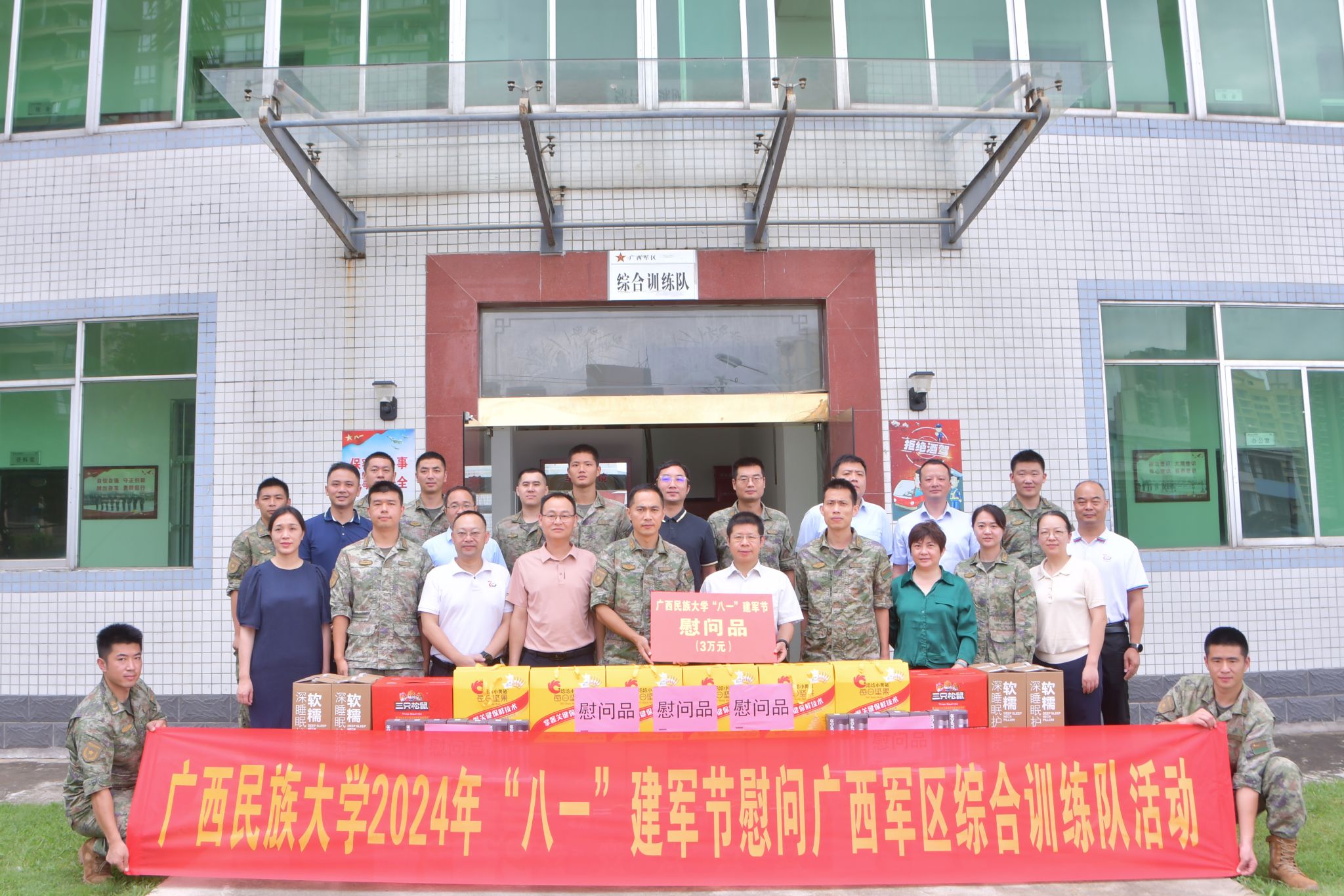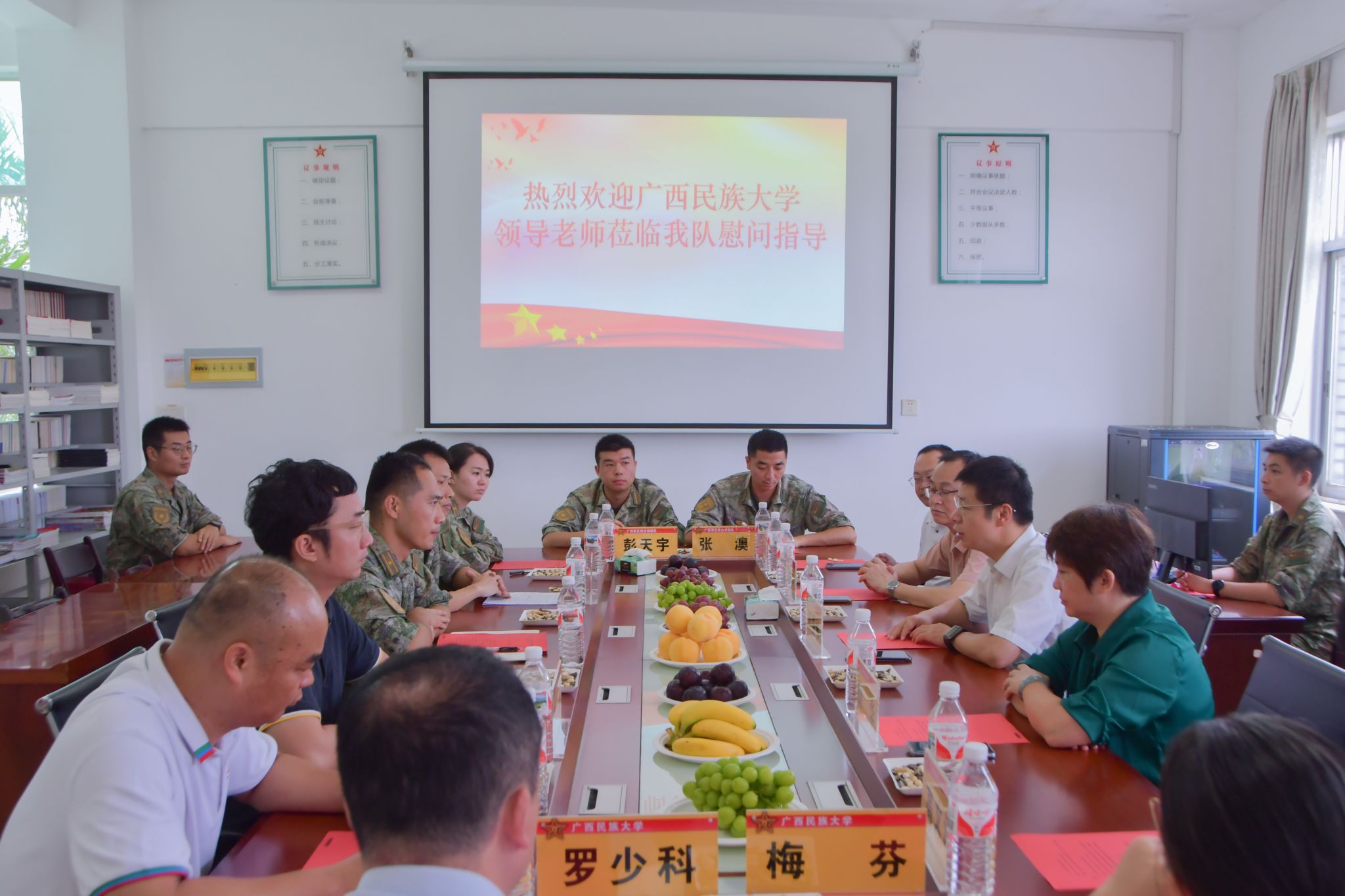 邓国彬代表学校向广西军区综合训练队全体官兵致以节日问候,对广西军区综合训练队长期以来给予学校各项工作的关心和支持表示衷心感谢。他指出,希望学校与军区继续保持紧密联系,在国防教育、大学生军事训练、人才共育、资源共享等方面持续深化合作与交流。