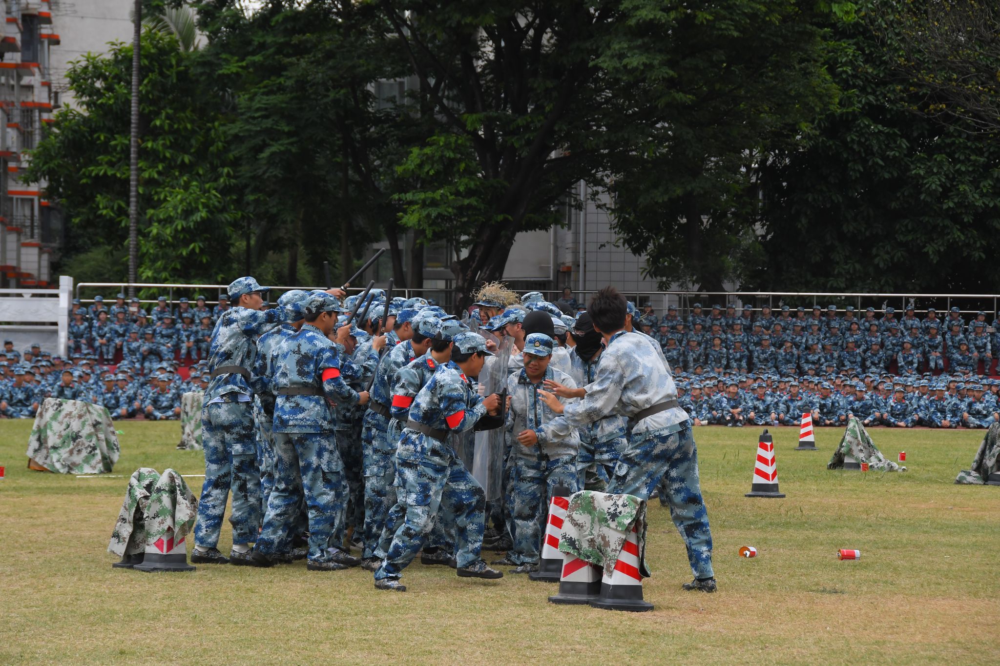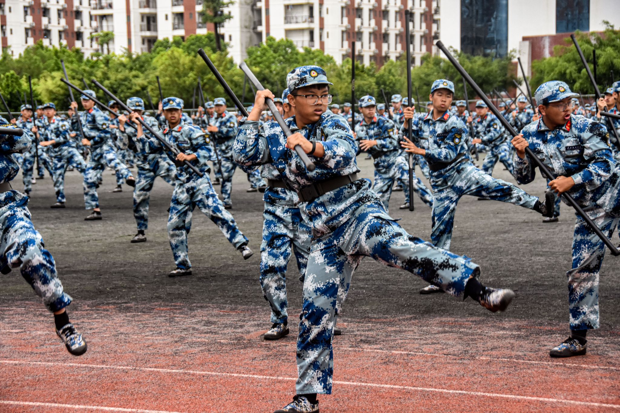 步伐训练,规范有序。他们身姿挺拔如松立,彰显坚毅不屈之品质;动作协调展风采,挥洒青春豪迈之神韵。