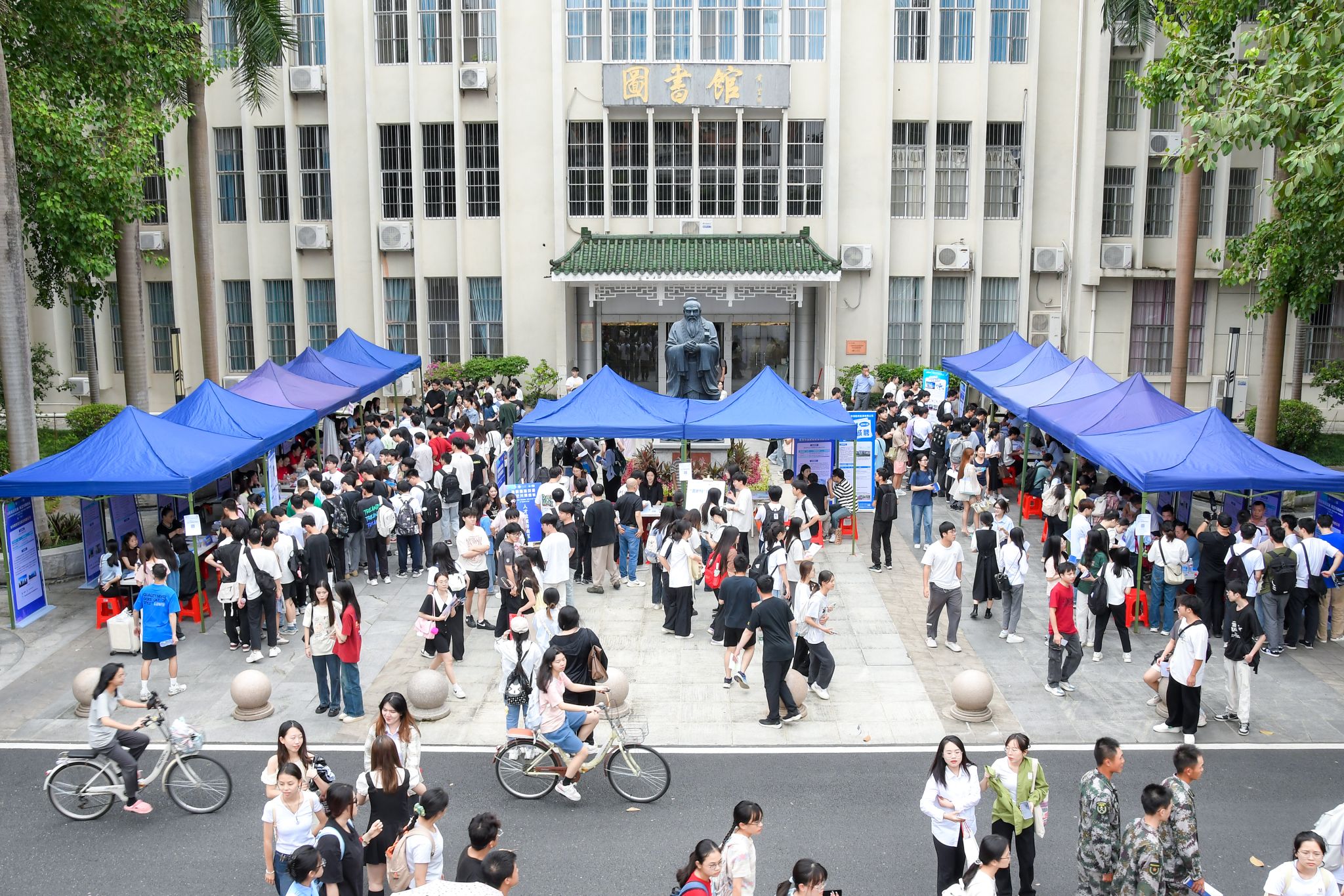 【大学生通讯社报道】9月24日下午,2025年毕业生首场秋季双选会在广西民族大学相思湖校区举行。学校党委常委、副校长姜明国到现场调研,了解双选会有关情况。