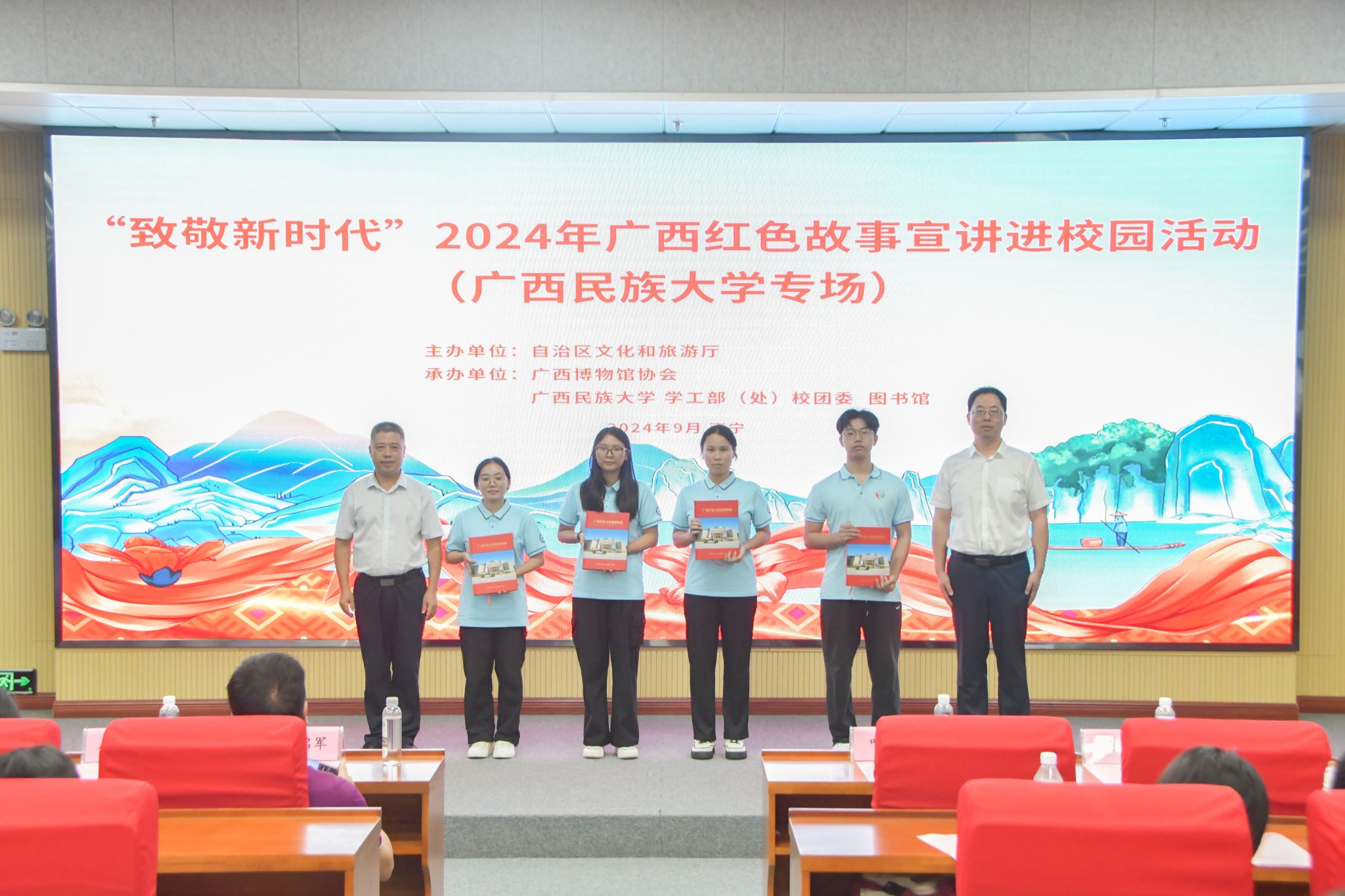 本次活动由广西壮族自治区文化和旅游厅主办,广西博物馆协会、广西民族大学学工部(处)、校团委、图书馆承办,旨在向同学们讲好新时代广西红色故事,激励其在红色故事中汲取奋进力量,传承红色基因。(初审:肖耀科 编辑:孙畅 复审:潘之铭 终审:王文娟)