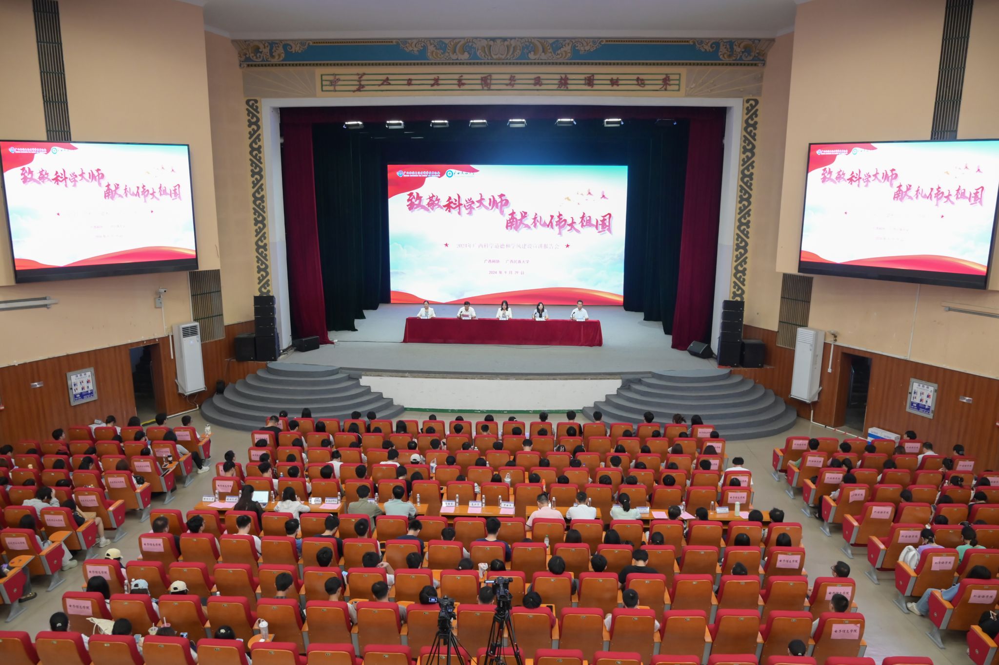 【大学生通讯社报道】为庆祝新中国成立75周年,学习贯彻习近平总书记对黄大年先进事迹重要指示精神,9月29日下午,“致敬科学大师,献礼伟大祖国——2024年广西科学道德和学风建设宣讲报告会"在广西民族大学相思湖校区大礼堂举行。吉林大学教授、移动平台探测技术研发中心副主任、黄大年纪念馆副馆长于平作“以大我之心,勇担教书育人使命”主题报告。自治区科协党组成员、副主席黎宁,学校党委常委、副校长高兴宇出席报告会。