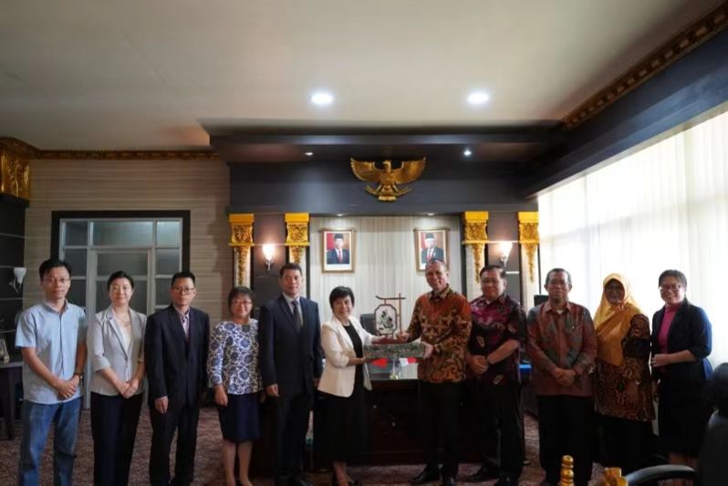 10月8日至13日,广西民族大学文学院党委书记陆晓芹一行到印尼丹戎布拉大学交流,印尼丹戎布拉大学校长嘉鲁达·维科校长会见了文学院代表团一行。