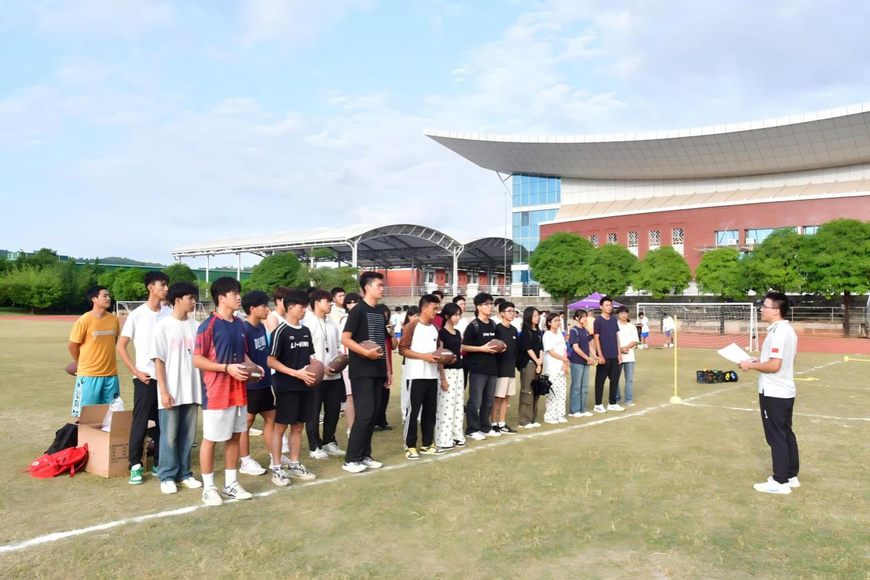 10月15日下午,广西民族大学运动会腰旗橄榄球项目教练员和运动员培训会在思源湖校区李宁田径场举行。本次培训会由体育与健康科学学院陈述保老师主持,各学院体育部负责人和腰旗橄榄球负责人参加。
