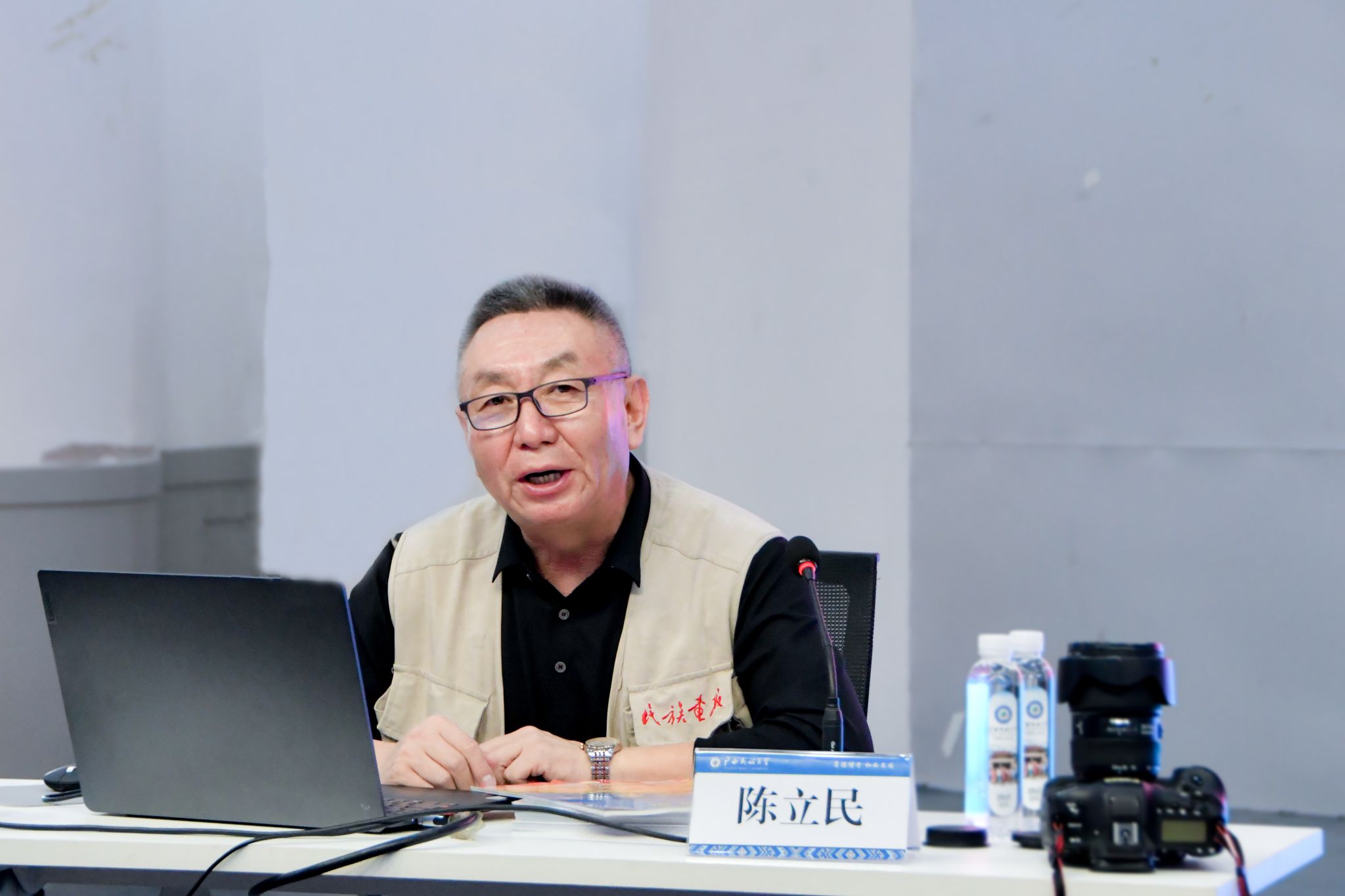 陈立民从“相约草原,遇见那达慕”角度出发为现场师生讲解“新闻的概念”“何为新闻报道”“图片新闻报道”“新闻图片报道的特点”“新闻图片报道的实践”等知识。他以清晰的逻辑和生动的实例,深入浅出地指出图片新闻报道具有六个特点:一是高度概括性和典型性;二是生动形象、一目了然;三是文字说明起着重要的补充说明作用;四是图片新闻是快速出击的新闻报道方式;五是具有图文并茂的优势;六是具有广泛的题材和受众基础。