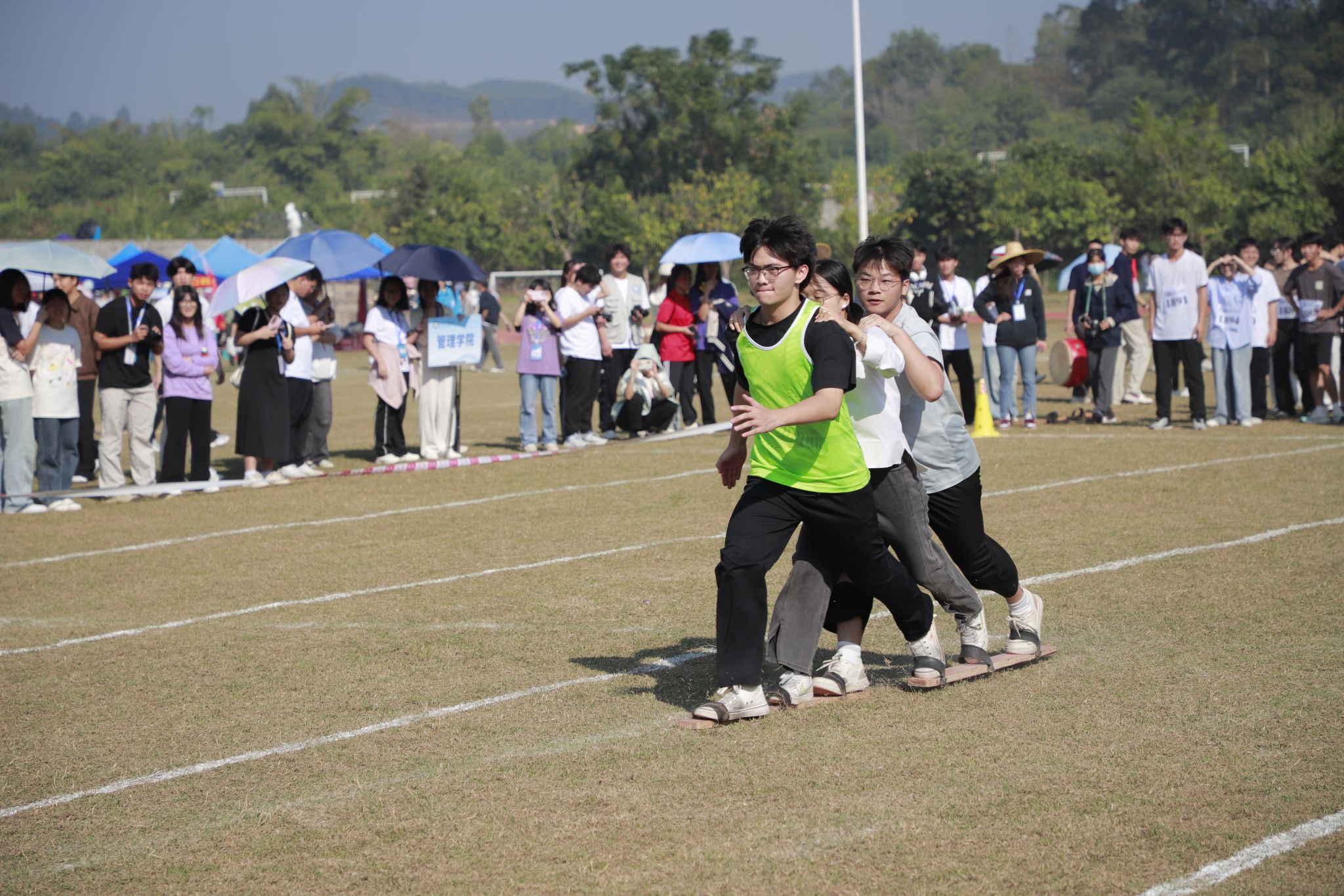 【大学生通讯社报道】10月31日10时30分,2024年广西民族大学运动会三人板鞋项目决赛在思源湖校区开赛。政治与公共管理学院在23支参赛队伍中以2分36秒48的成绩脱颖而出,夺得桂冠。文学院、法学院分别以3分2秒81、3分12秒40的成绩获得亚军、季军。