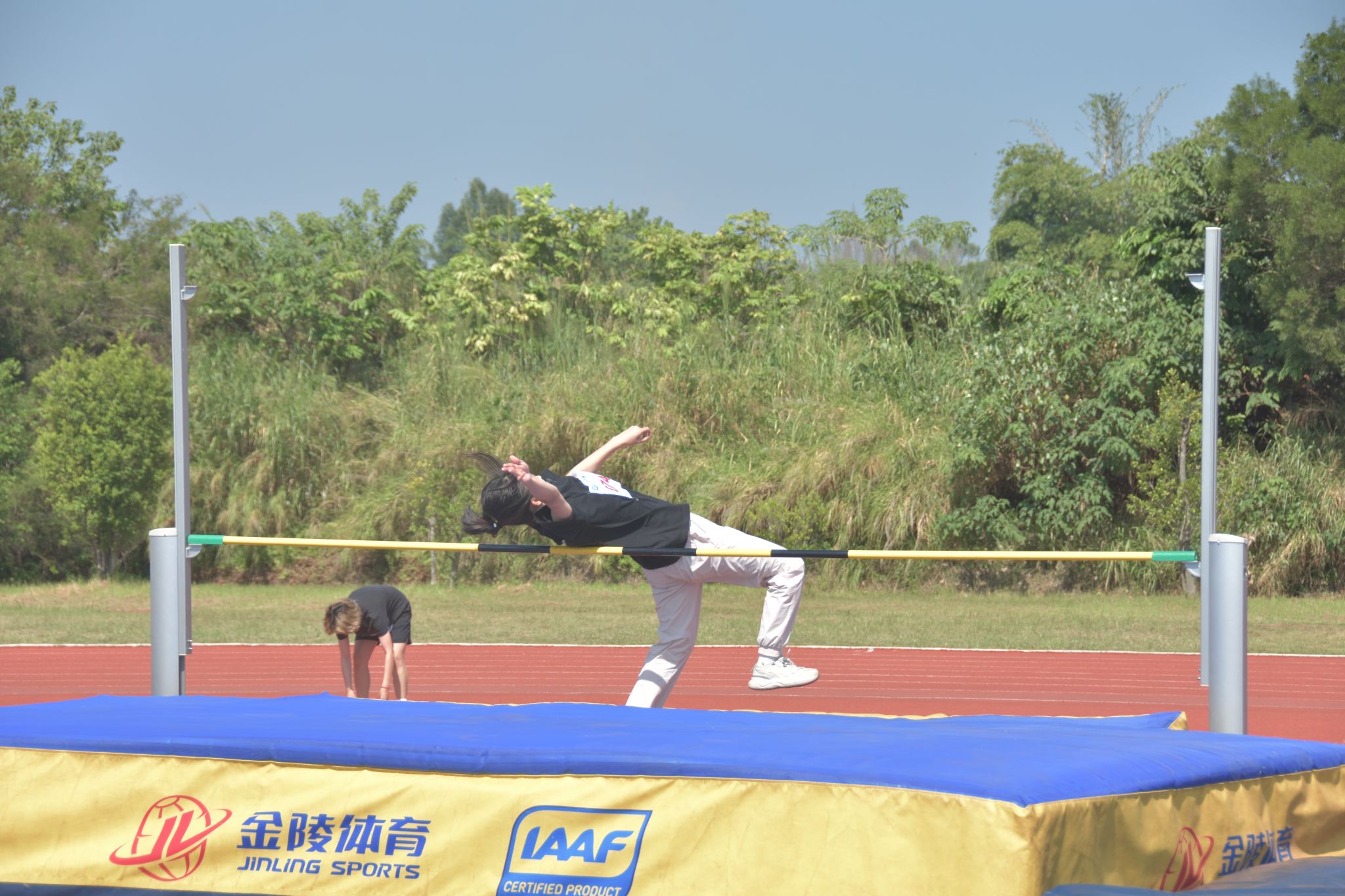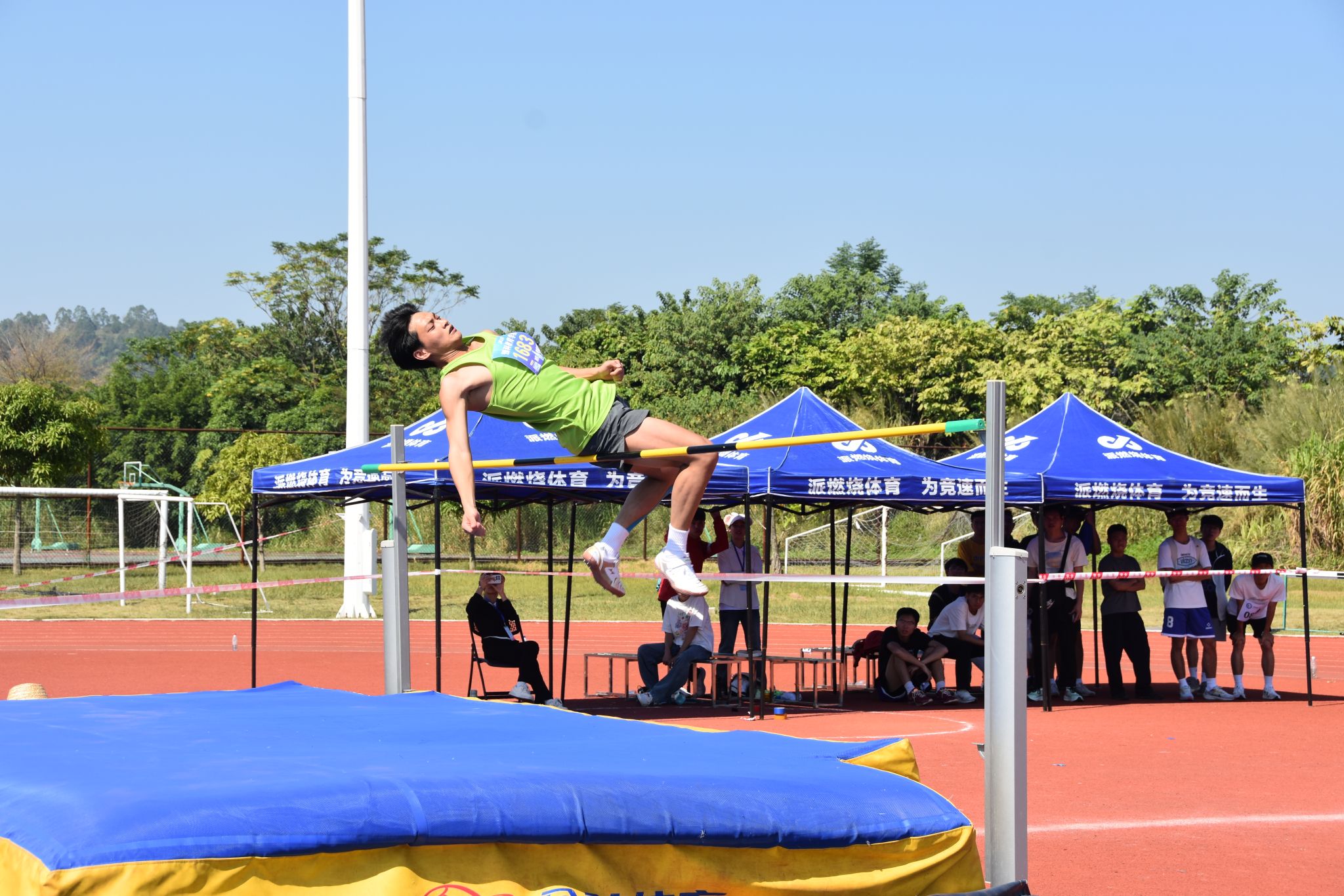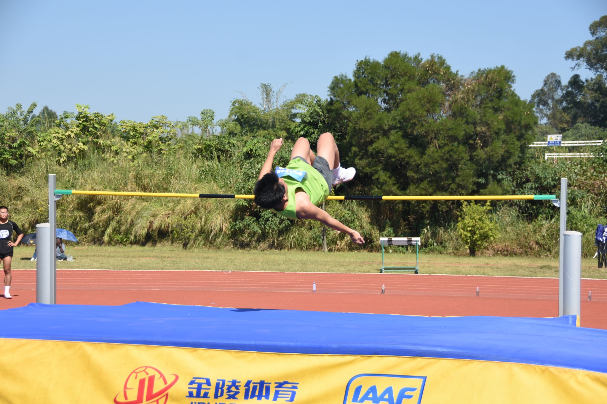 男子甲组跳高冠军陈嘉颖越杆瞬间