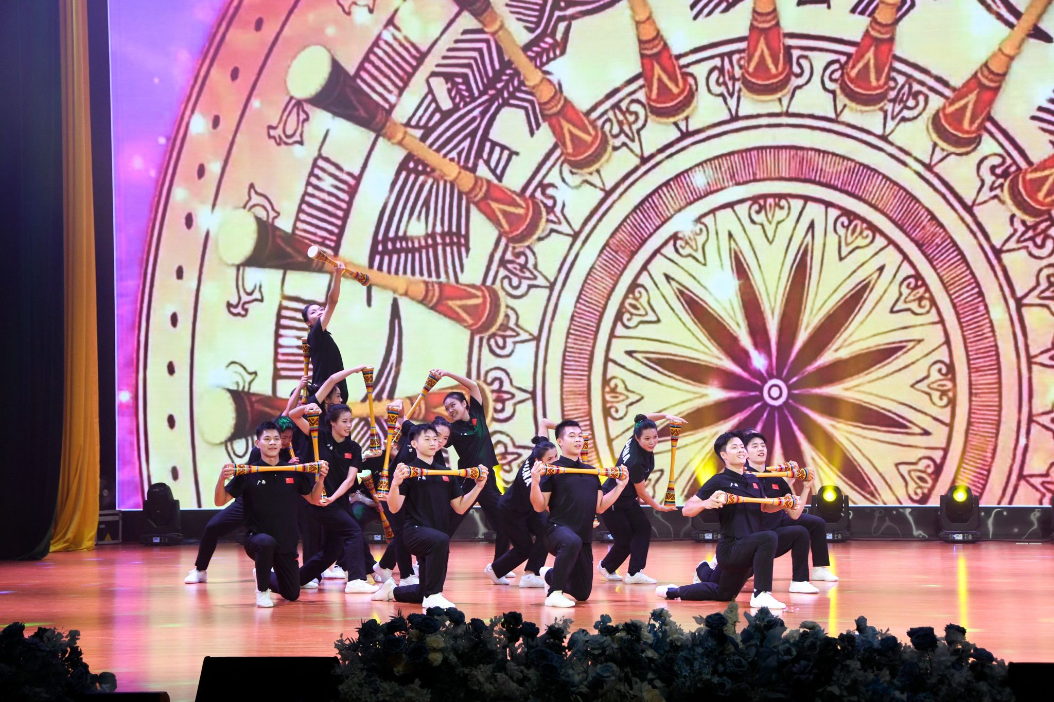庆典在艺术学院/民歌学院“那蓝布壮”室内乐团带来的重奏曲《匏骨·情》中拉开帷幕,和谐悦耳的音乐融合了壮族与京族的民族乐器,展现广西人民对热土的深情与厚爱。老挝留学生的歌曲《老挝真美丽》和越南留学生的舞蹈Cây đa quán dốc 带领观众领略老挝山水、越南风情。梁远老师、李雅婧老师的《红梅赞》表达对房英、陶红、曾瑞莲等资深教授的崇高敬意。东南亚特色服装走秀、留学生的歌曲串烧、校友歌曲舞蹈,以及舞台剧等节目使现场掌声雷动,观众的回应将气氛推向高潮。