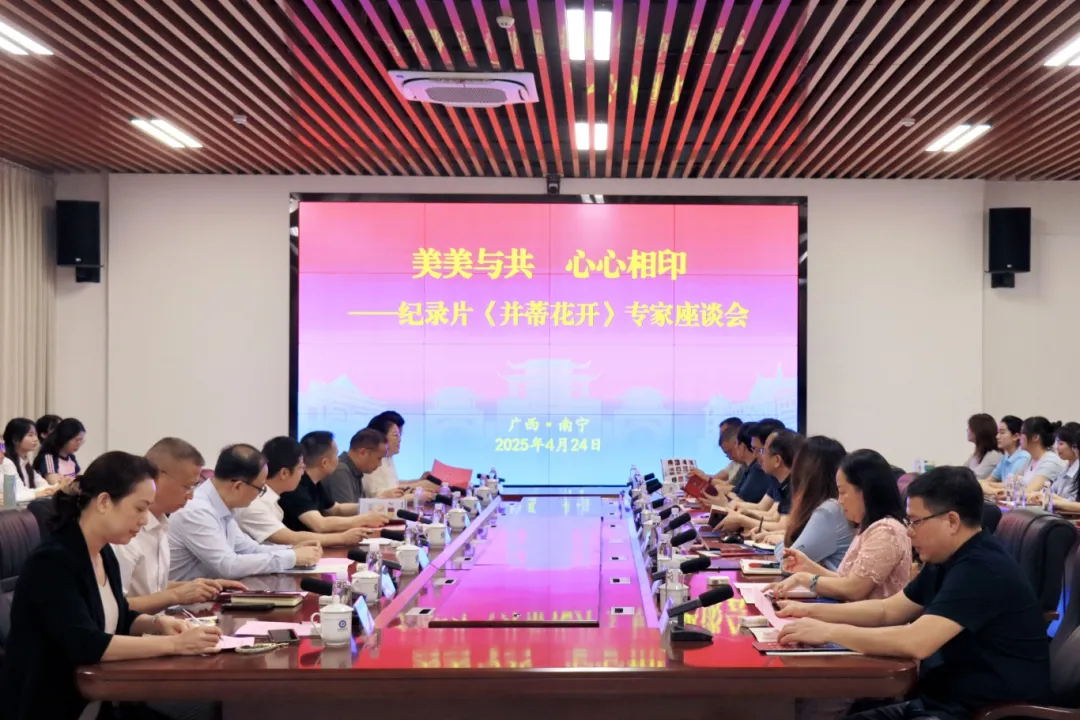 4月24日,中马“两国双园”纪录片《并蒂花开》专家座谈会在广西民族大学举行。校党委副书记邓国彬、光明日报社广西记者站站长周仕兴及自治区文化和旅游厅、自治区广电局、新华社广西分社、广西日报社、广西广播电视台、当代广西杂志社、钦州市委宣传部、南宁市融媒体中心等多方专家学者,传媒学院师生代表参加座谈会。会议由传媒学院院长杨学明主持。
