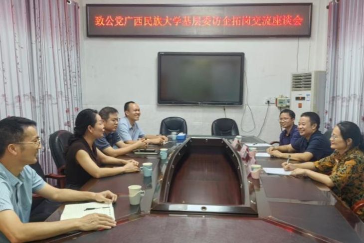 10月17日上午,致公党广西民族大学主委、广西职业师范学院副校长刘晓骥,副主委杨静林博士、何桂添教授赴来宾市武宣县教育体育局开展校企拓展交流活动,并与县教育体育局局长覃金慧及其领导班子座谈交流。