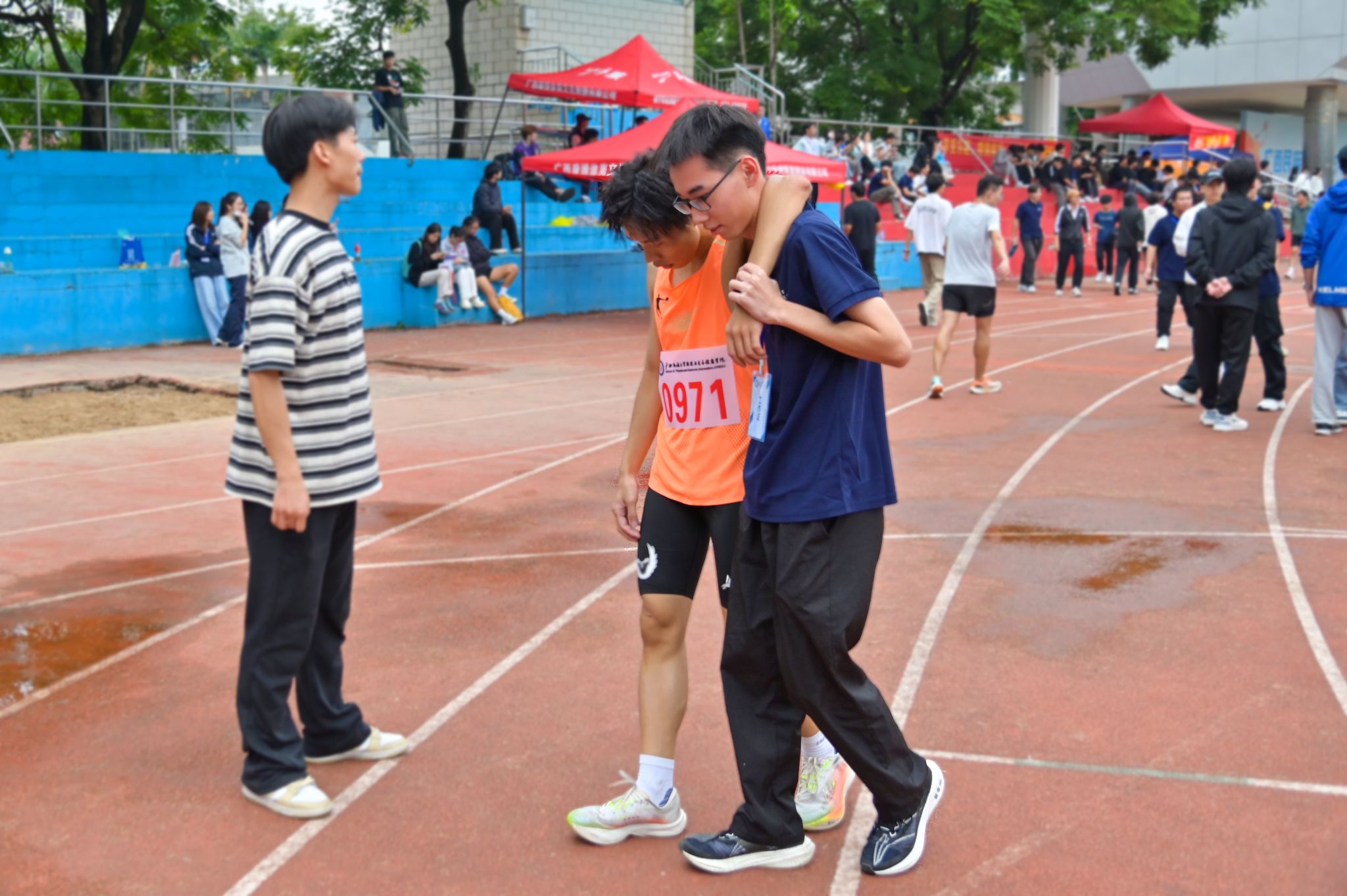 鼓声擂响青春,呼声冲破云霄。跑道两侧,同学们奋力摇旗、击鼓助威。当长跑选手冲过终点,总有坚实的臂膀成为他们最及时的倚靠。尽情的呐喊与无声的守护,共同汇成这个秋天最难忘的青春印记。
